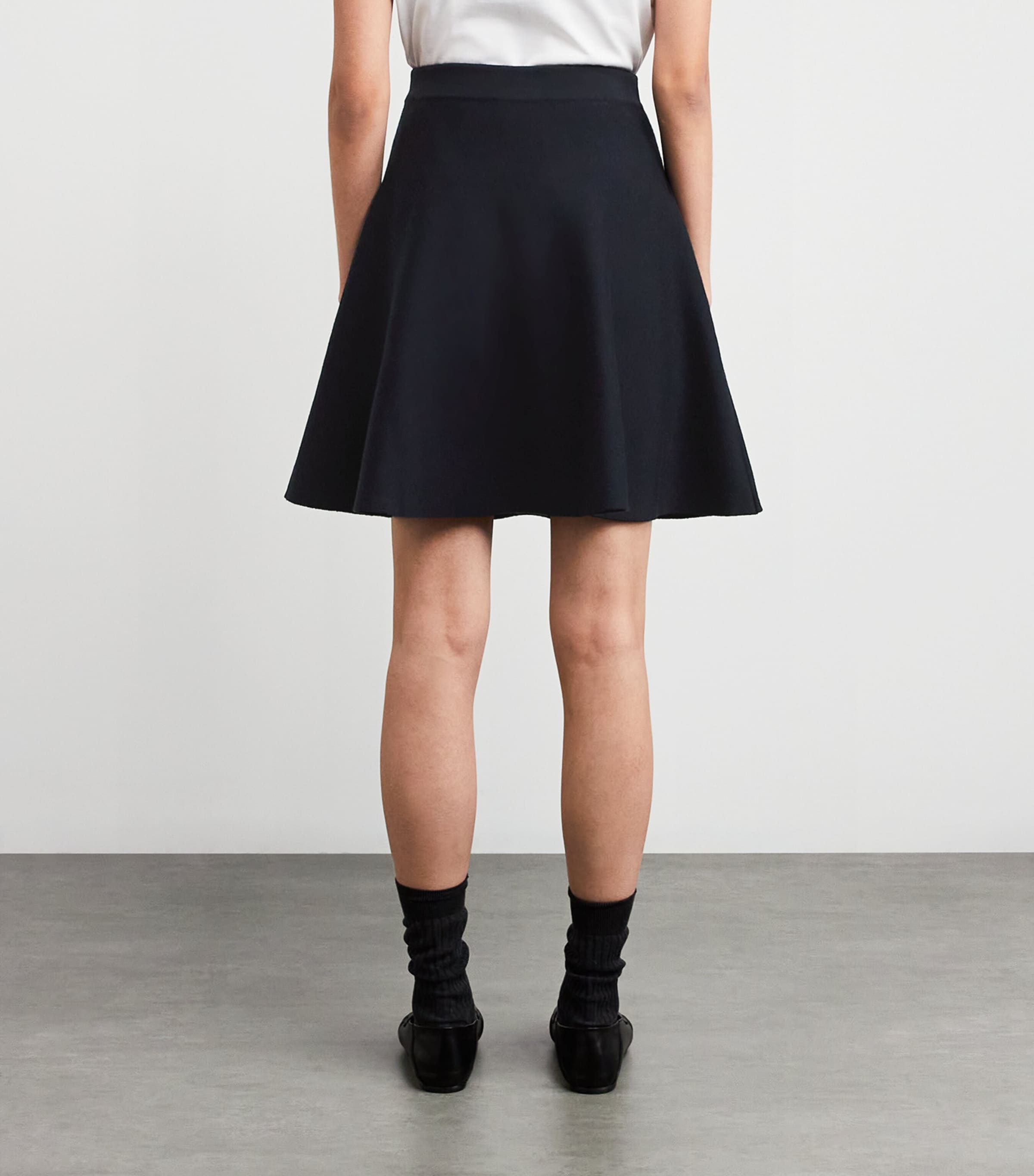 تنورة ميدي من ماكس مارا، مصممة من صوف بكر ناعم ومرن، تتميز بقصّة دقيقة تضفي عليها دفئًا ووزنًا. تصميمٌ رائعٌ وهادئ، يعكس لوحة الألوان المحايدة والخطوط المعمارية المميزة للعلامة التجارية بأناقةٍ سلسة.
