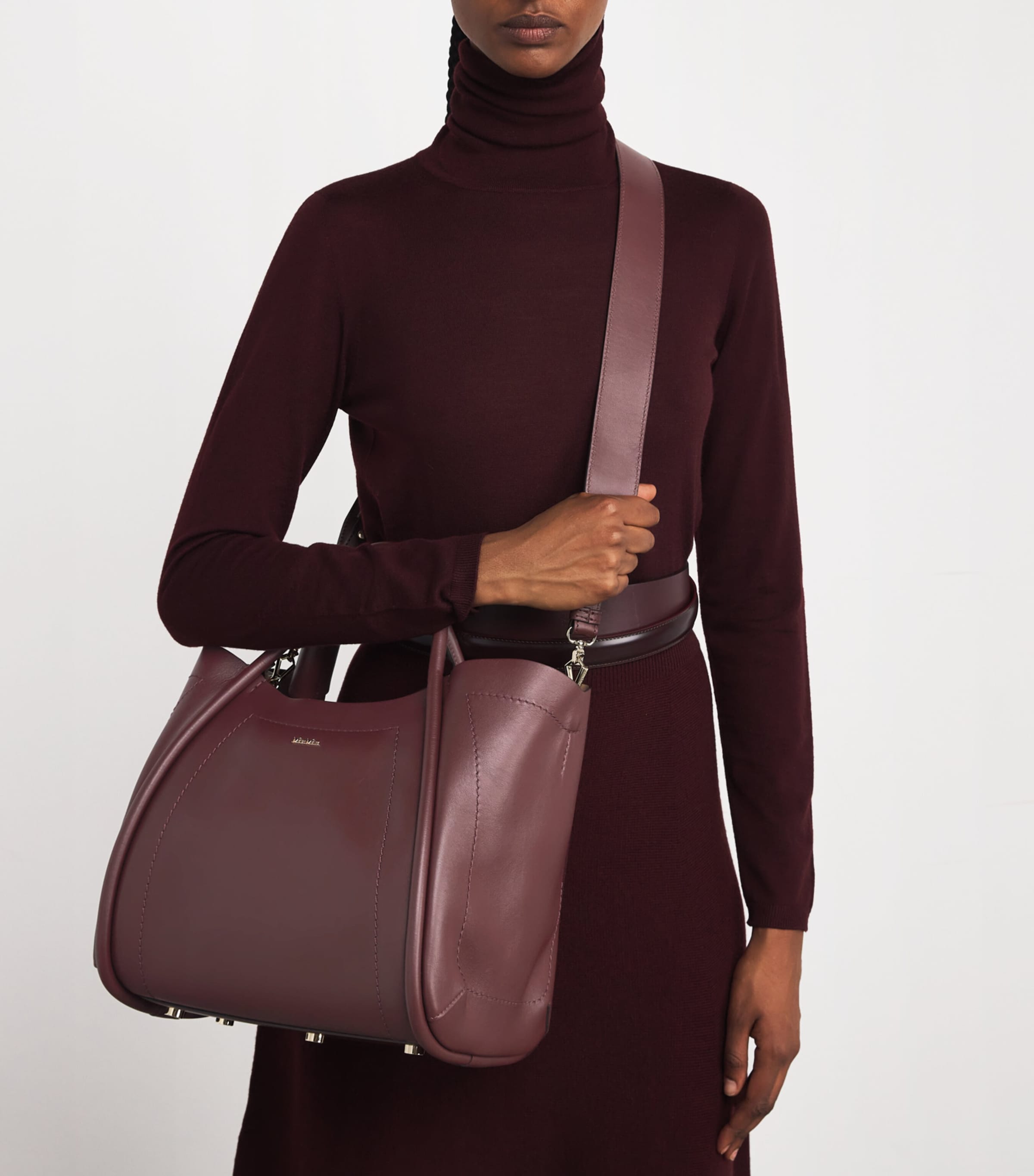 حقيبة ماكس مارا البحرية الجلدية الصغيرة الحمراء ذات المقبض العلوي - بوردو / نظام التشغيل