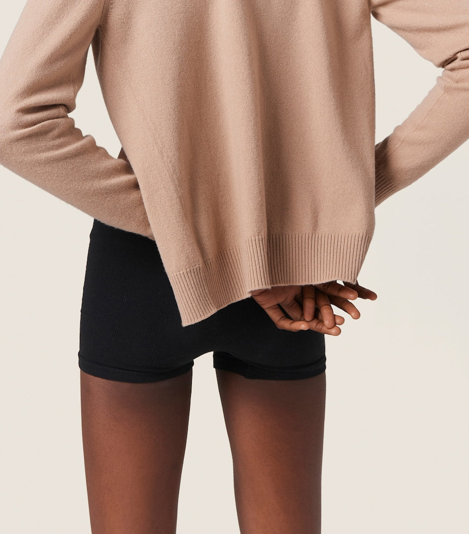 القطعة الأساسية في كل إطلالة من ميو ميو. ميو ميو خبيرة في تنسيق الإطلالات متعددة الطبقات، لذا من الطبيعي أن تكون هي أساس كل طقم. شورتات البوكسر بدون درزات من الدار توفر راحة طوال اليوم بفضل تركيبتها القطنية المرنة، وبفضل حزام الخصر المزين بالشعار، يمكنكِ تجربة تنسيقها بتركه ظاهرًا.