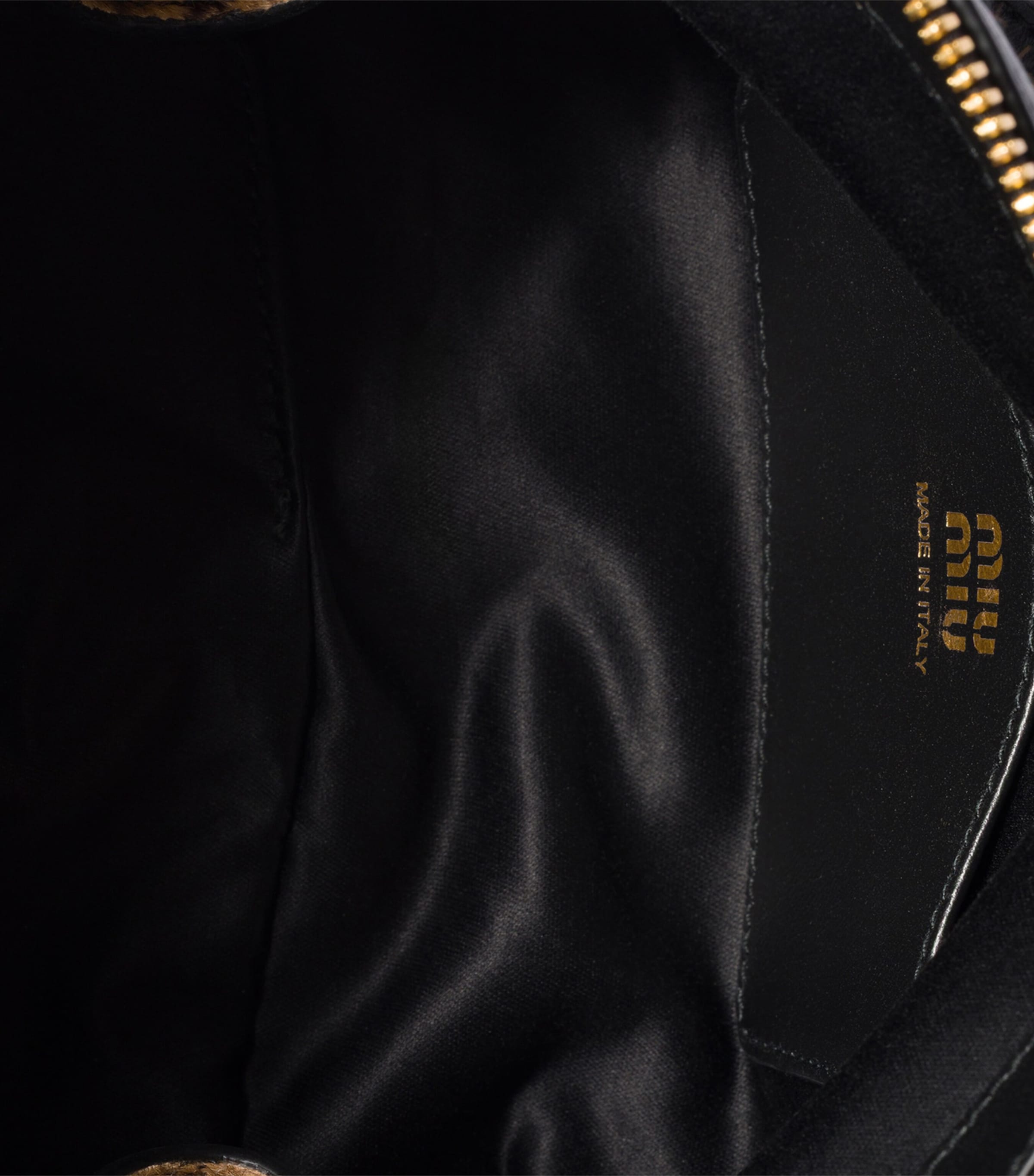 حقيبة يد صغيرة من جلد العجل بنقشة جلد النمر من ميو ميو