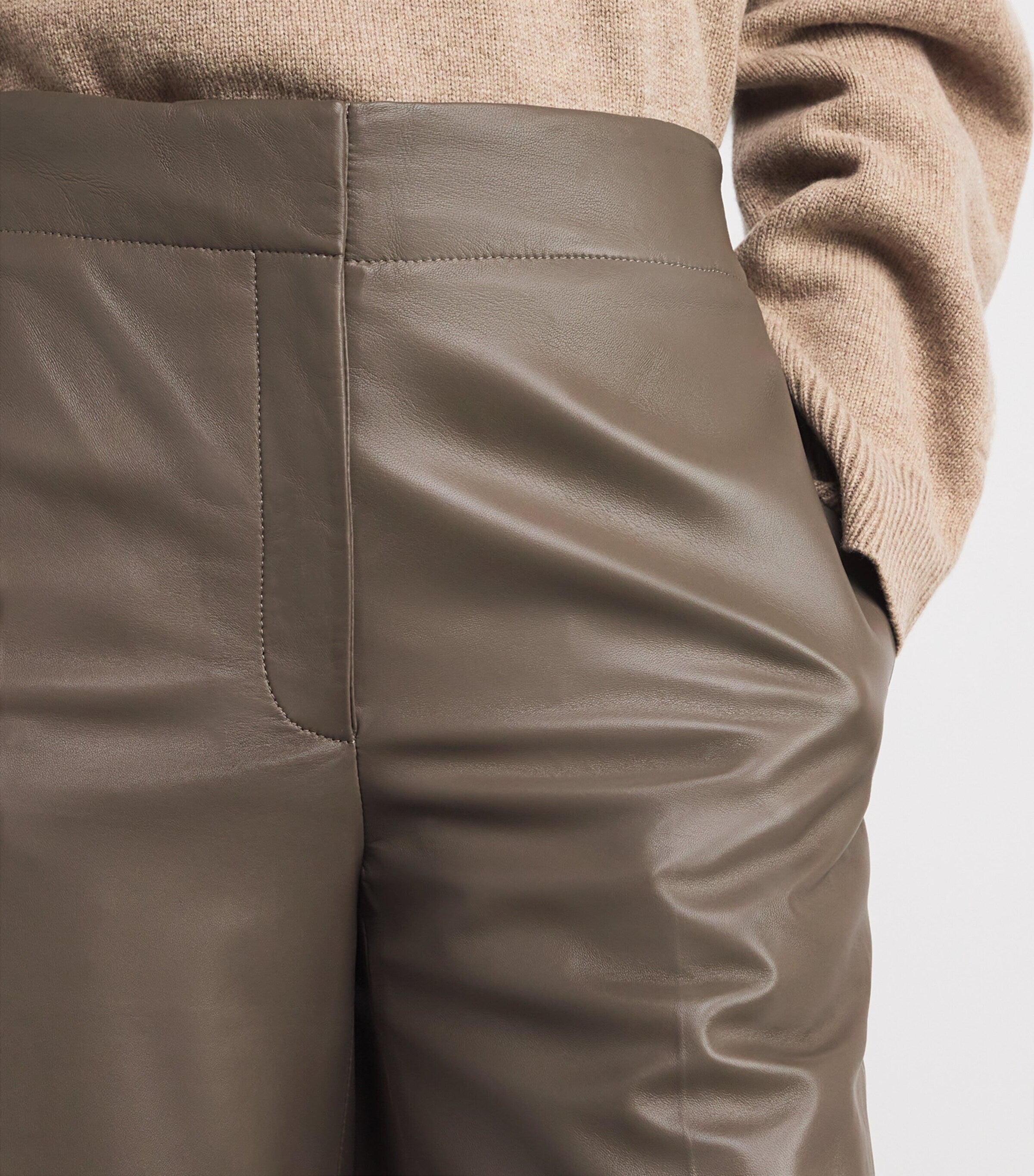 بنطلون ثورلو واسع الساق من جلد النابا بلون الفطر