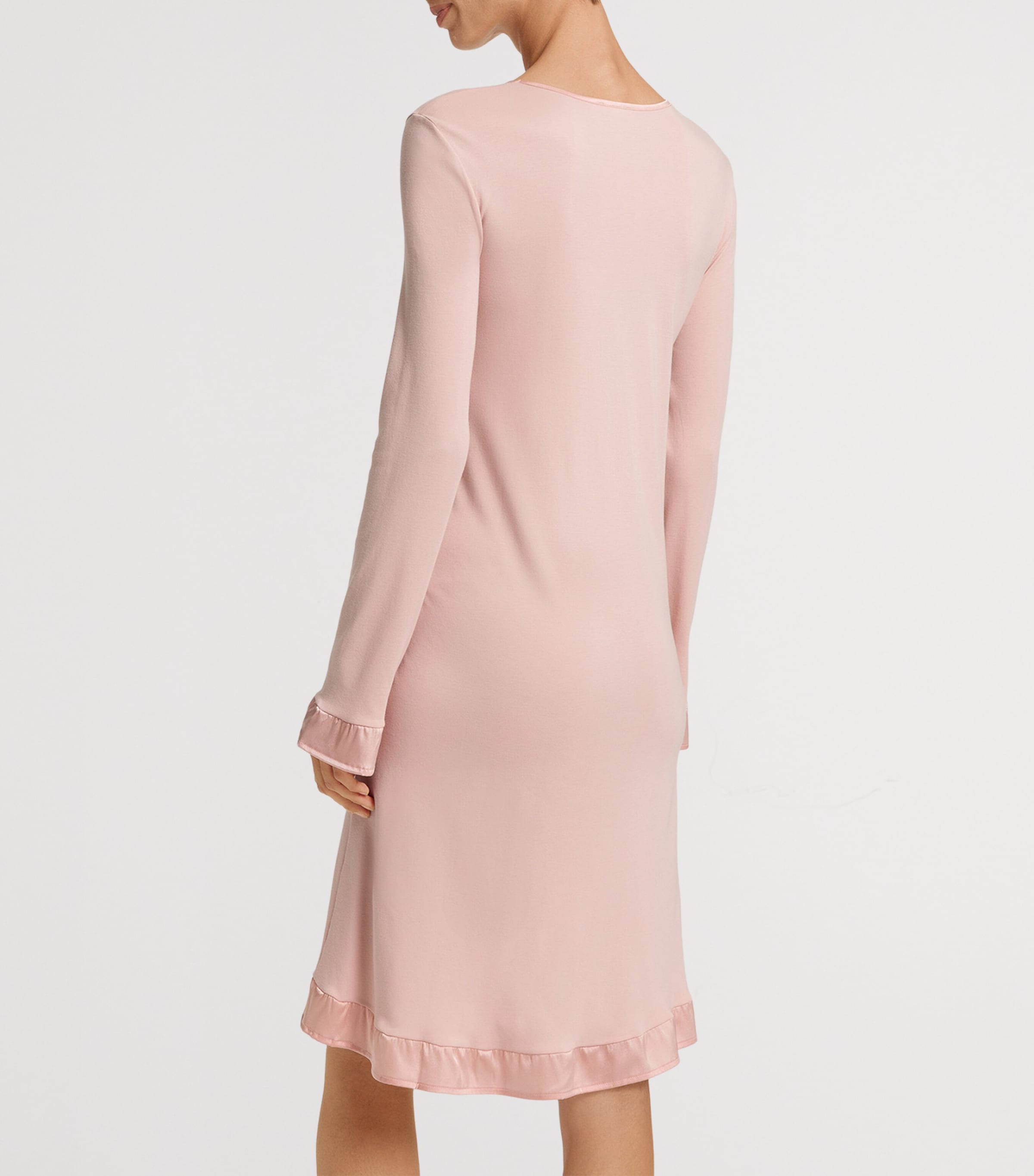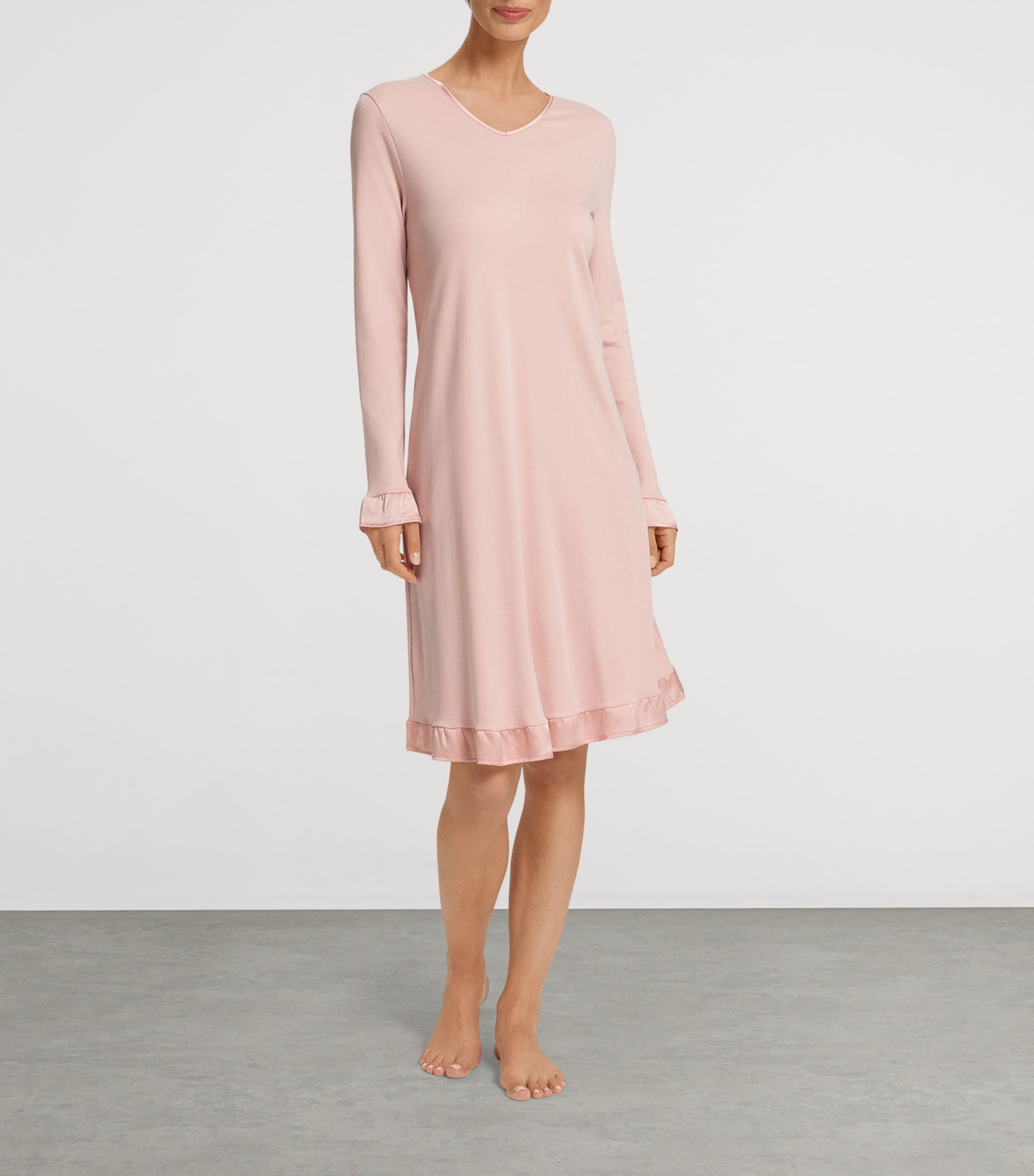 قميص نوم كلير بأكمام طويلة من مزيج القطن بلون البيج - وردي/وردي / XS