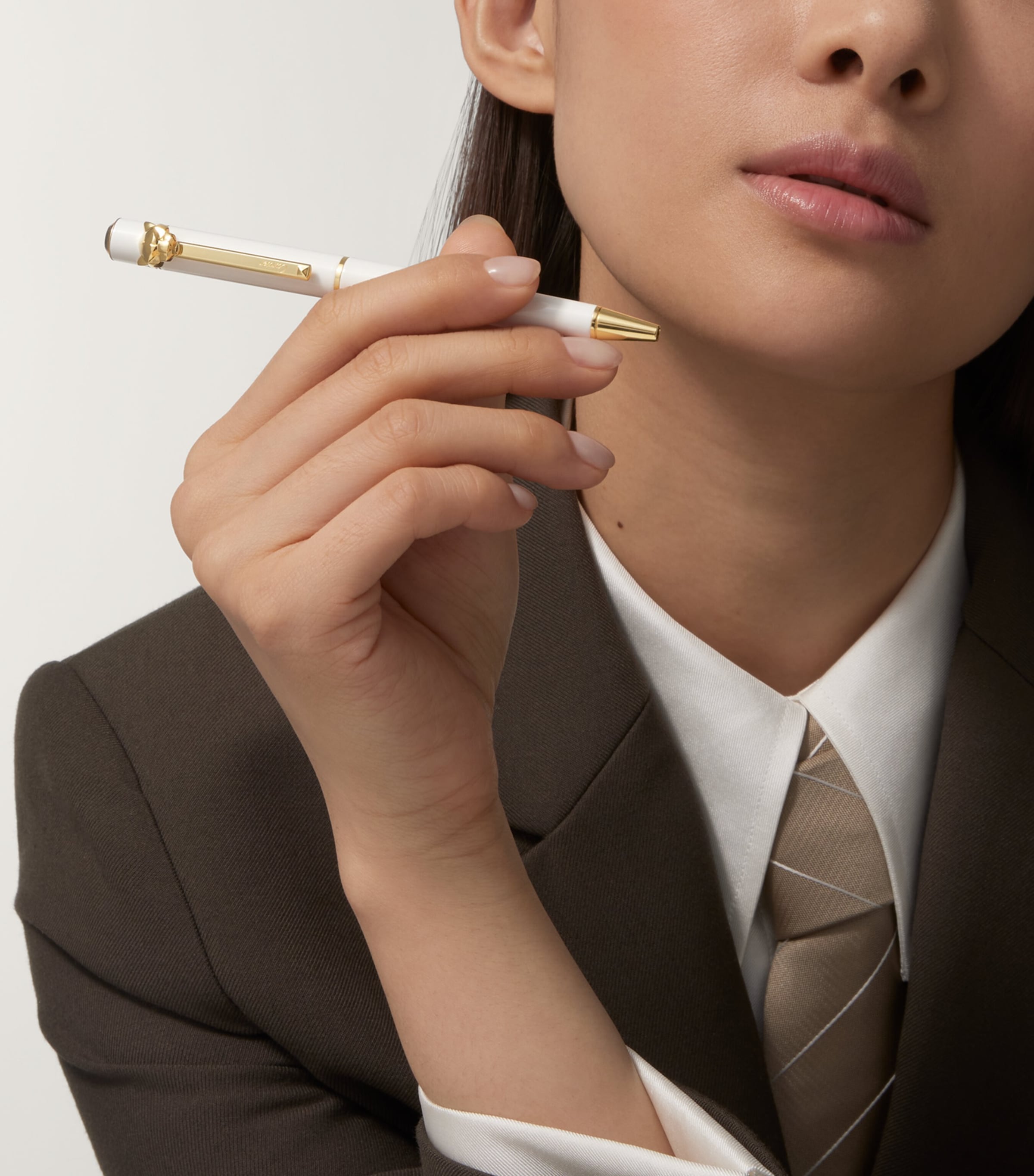 The iconic Cartier panther makes its way to the Maison’s stationery collection with the gold-tone palladium hardware on this Panthère de Cartier ballpoint pen. Presented in the label’s instantly recognisable red box, this elegant writing instrument is rendered in glossy lacquer for a smooth feel in the hand.
