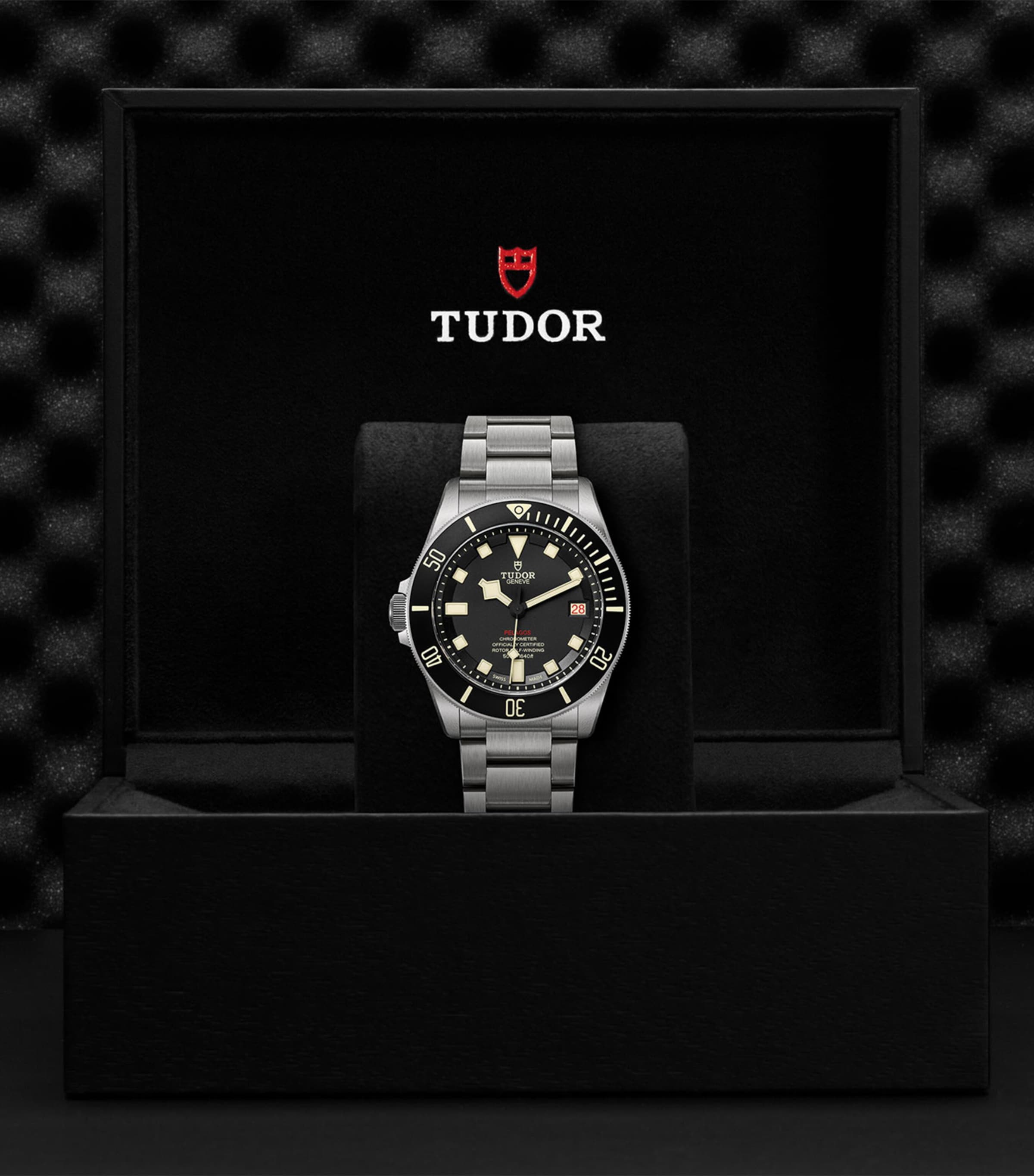 Signifying adventure, TUDOR’s Pelagos watch is a quintessential diving model with a sleek and sophisticated appearance that belies its technical capabilities. It’s crafted from titanium and offers a patented folding clasp with an auto-adjustable spring mechanism that allows you to tweak the fit while underwater to meet varying pressure demands.