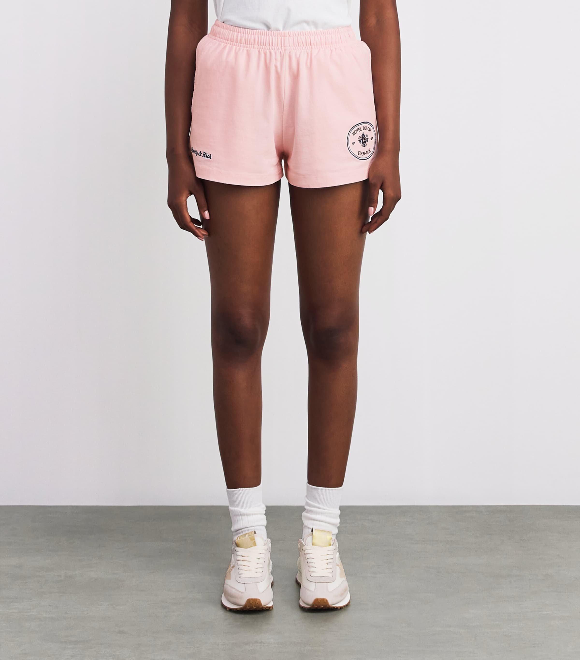استوحت سبورتي آند ريتش إلهامها من صور الفندق القديمة، وتعاونت مع فندق كاب إيدن روك الشهير في تعاونٍ رائد يجمع بين الطابع الرياضي المميز لهذه العلامة وأناقة الريفييرا الفرنسية. والنتيجة قطعٌ خالدة مثل شورت الديسكو هذا - المصنوع من قماش جيرسي قطني ثقيل فائق النعومة مطرز بشعاري كلا الجانبين.