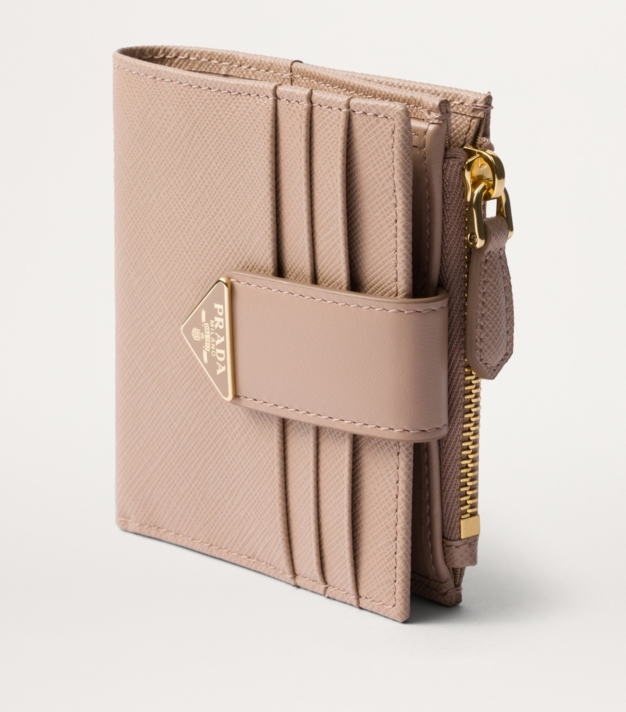 حامل بطاقات قابل للطي من جلد سافيانو بلون البشرة من برادا - f0236 / نظام التشغيل