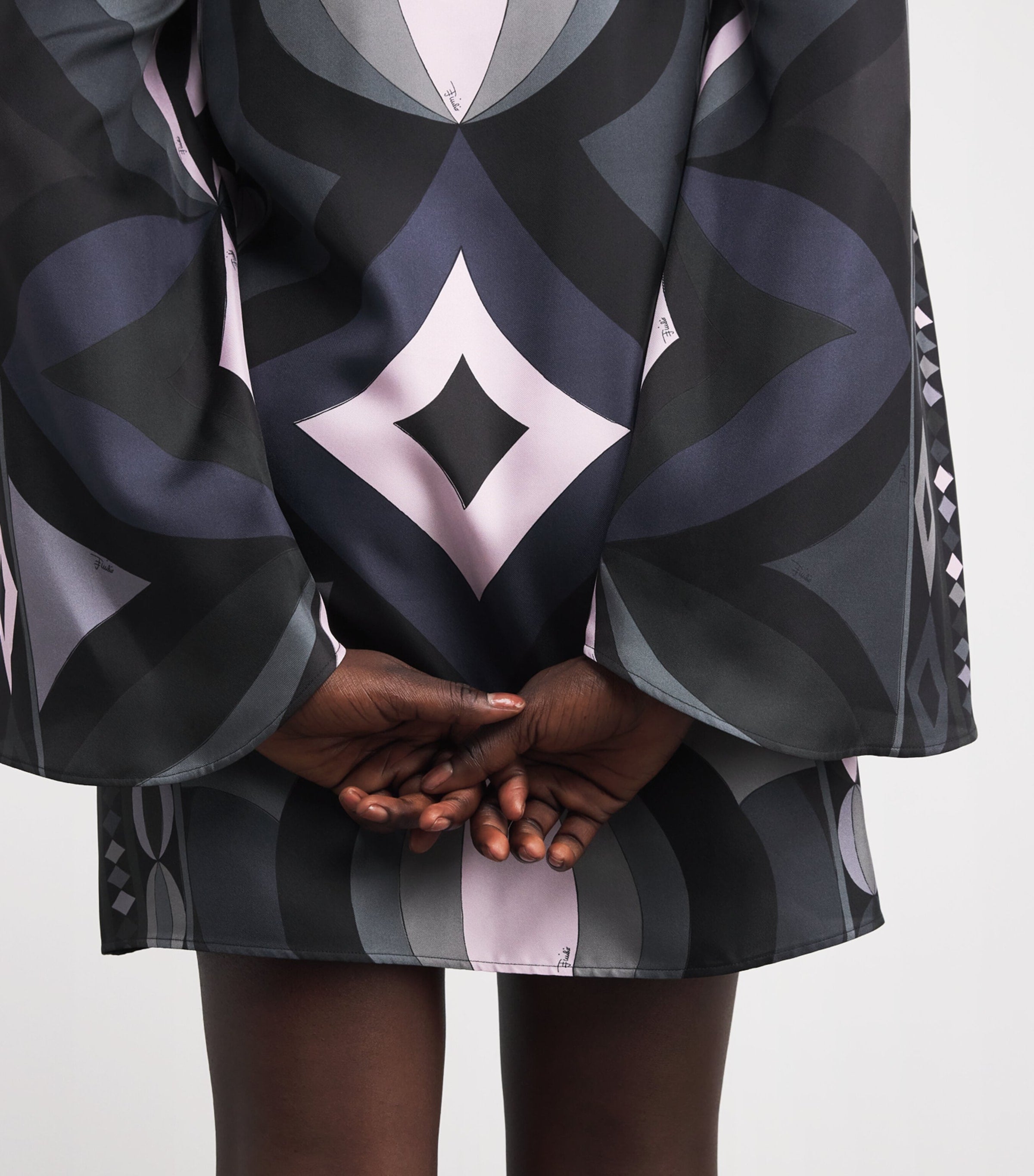 فستان بوتشي الأسود الحريري القصير ذو الرقبة العالية - 023/أسود وردي / 46 تكنولوجيا المعلومات