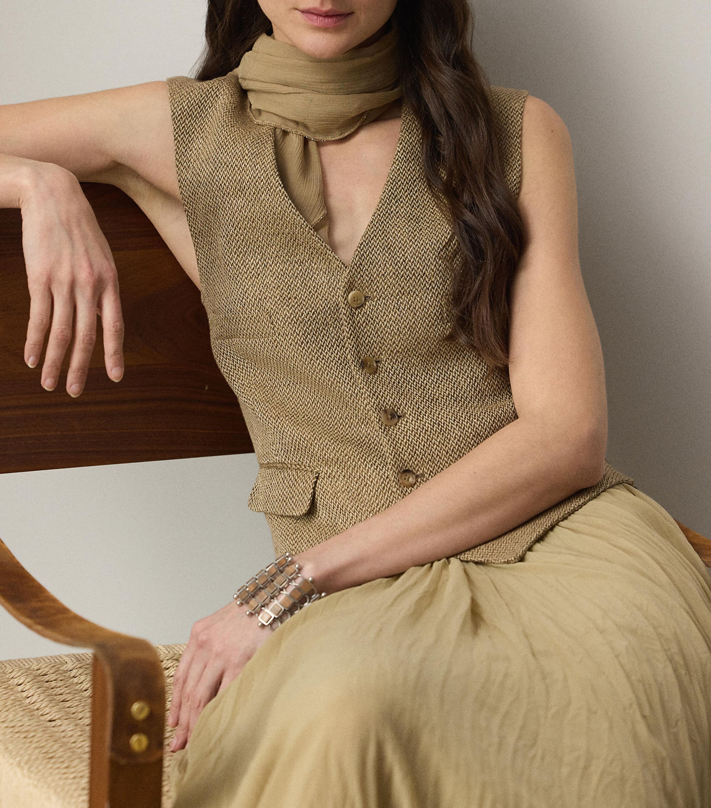 صدرية من الكتان البيج من مجموعة رالف لورين، من تويد الشعير الهولندي