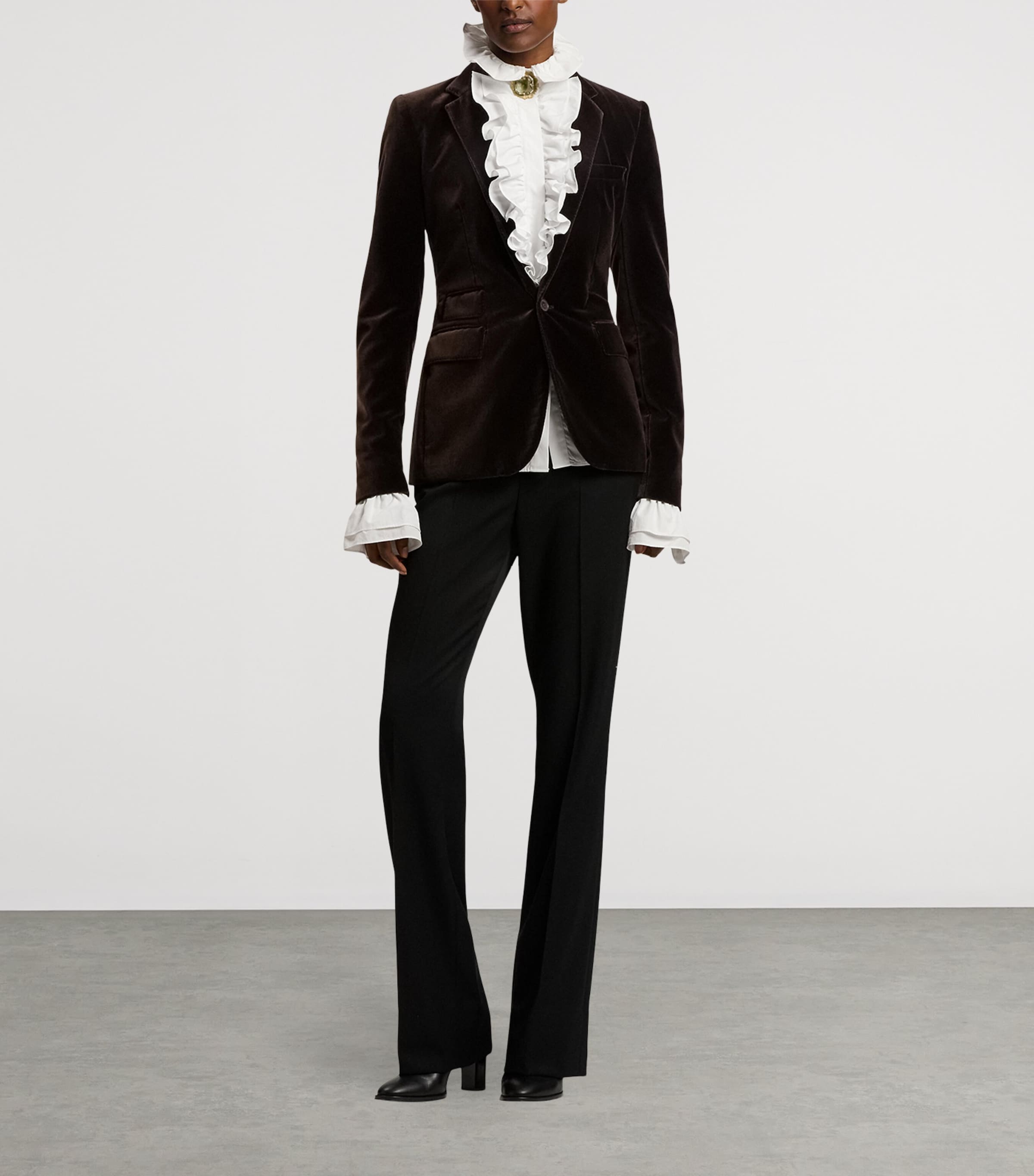 بليزر باركر بني من مجموعة رالف لورين، مصنوع من مزيج القطن والمخمل
