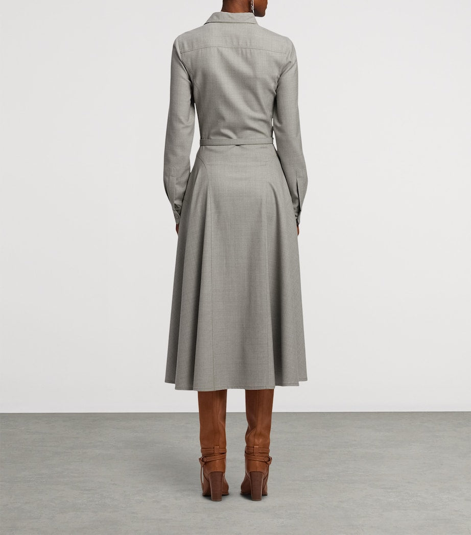 فستان سافورد متوسط الطول من مجموعة رالف لورين، رمادي من الصوف، بحزام