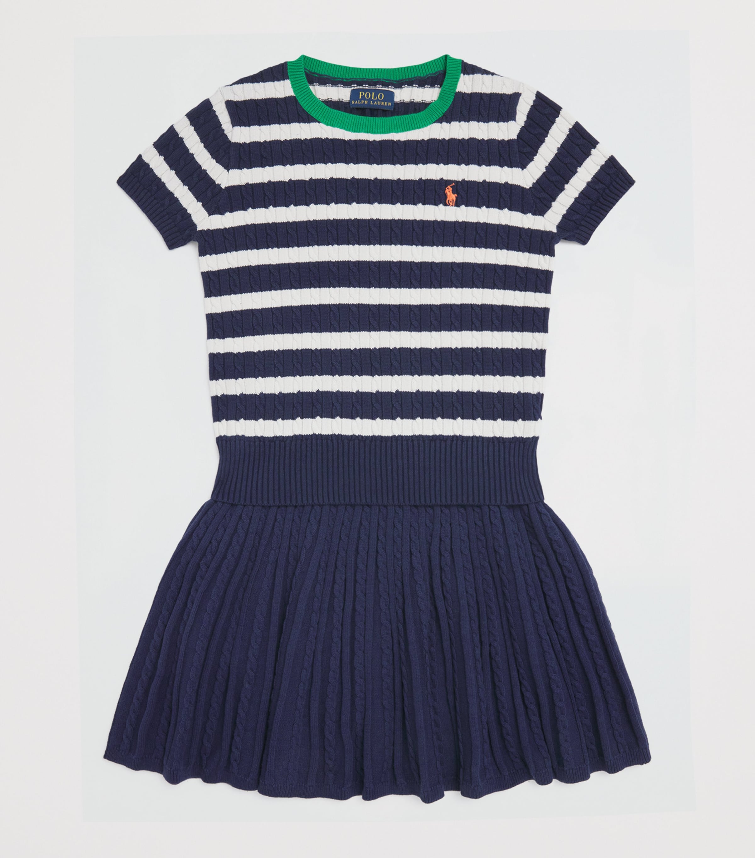طقم رالف لورين للأطفال مكون من بلوزة وتنورة مخططة محبوكة (7-14 سنة)