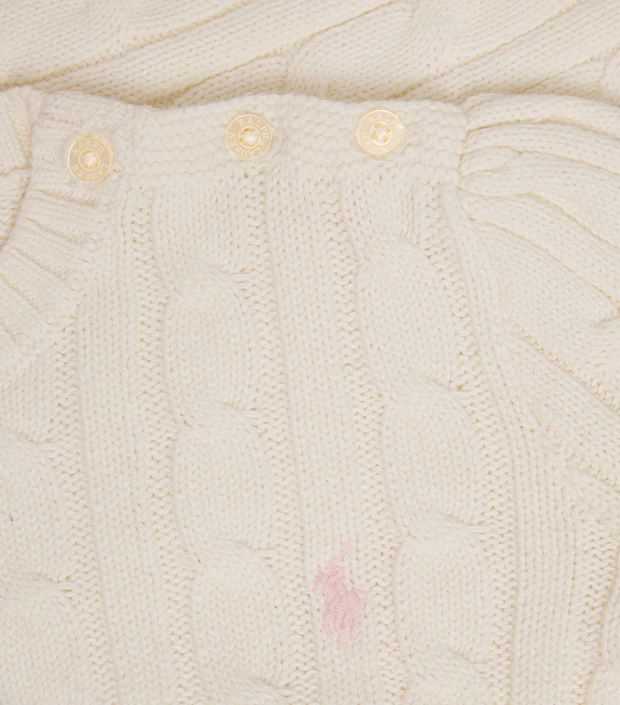 كنزة رالف لورين للأطفال من القطن المحبوك بنمط كابل بولو بشعار الحصان (4-6 سنوات) - أبيض دافئ مع وردي / 4 الولايات المتحدة