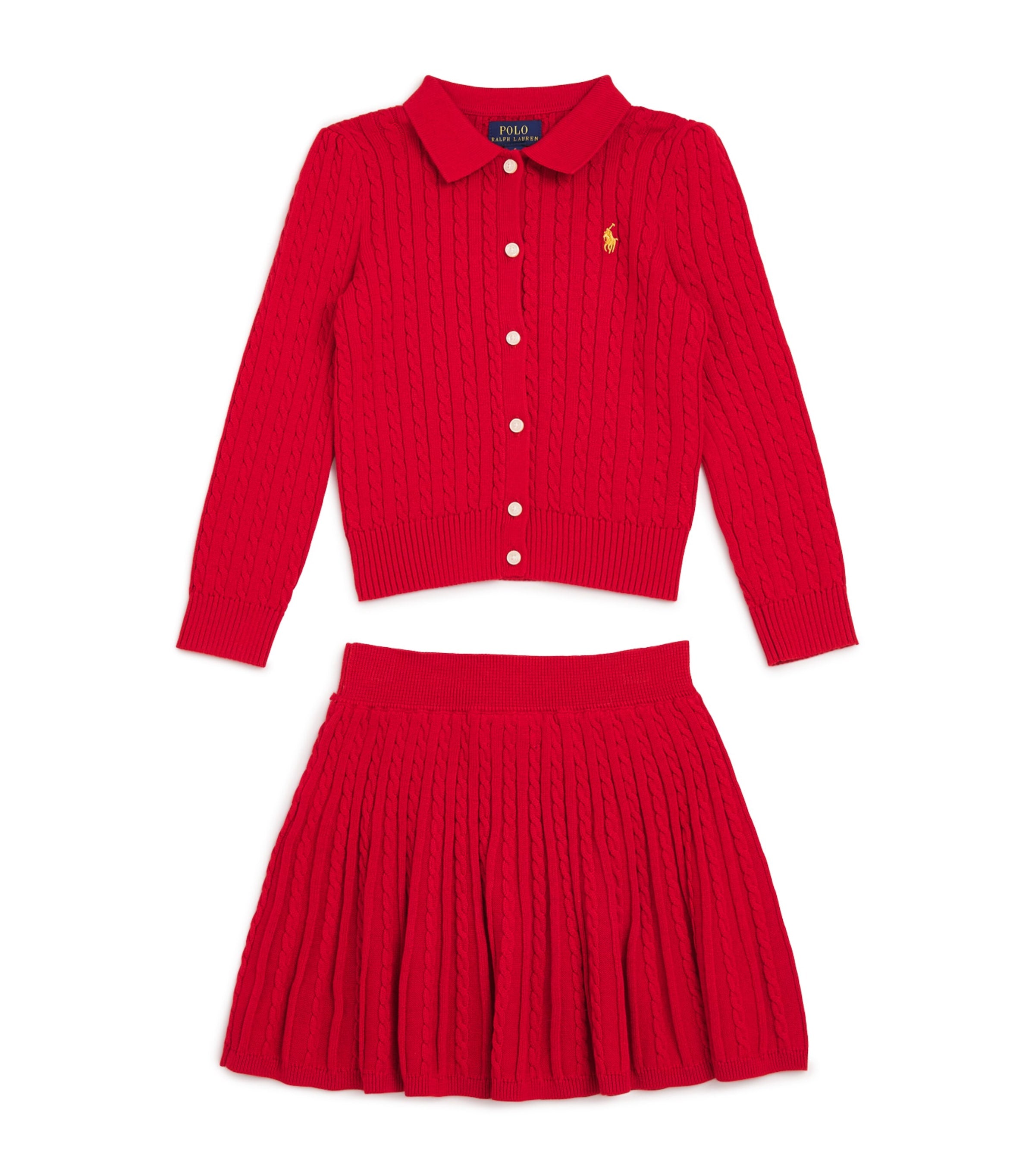 طقم كارديجان وتنورة قطني للأطفال من رالف لورين (من سنتين إلى سبع سنوات)