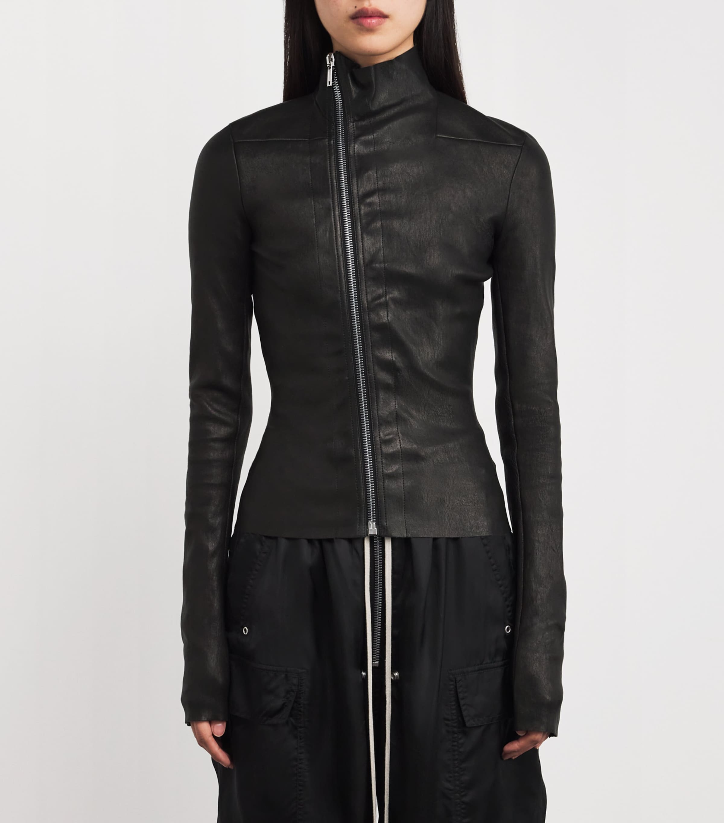 جاكيت ريك أوينز غاري من جلد الحمل الأسود