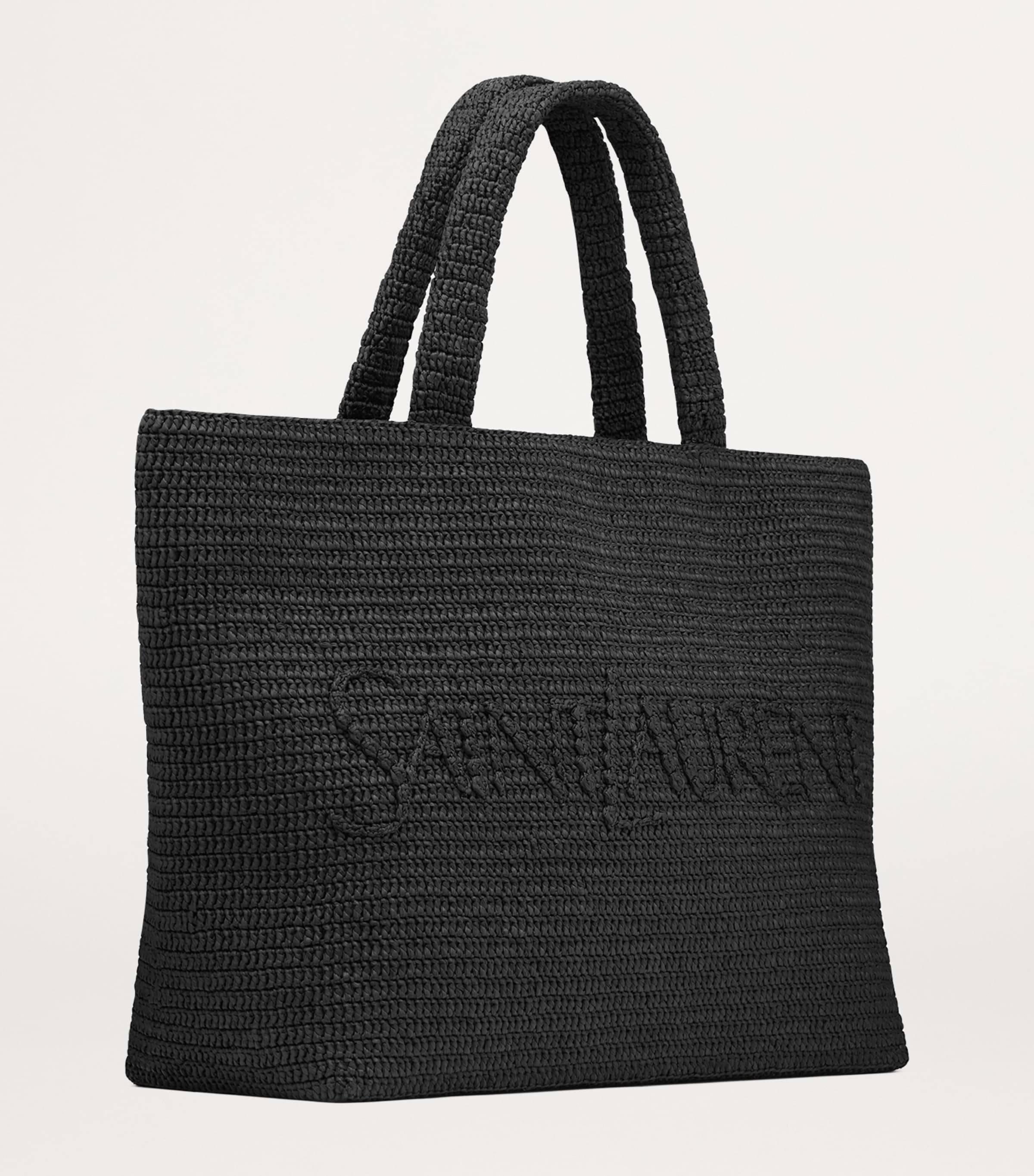 حقيبة توت سوداء بشعار الرافيّا من سان لوران