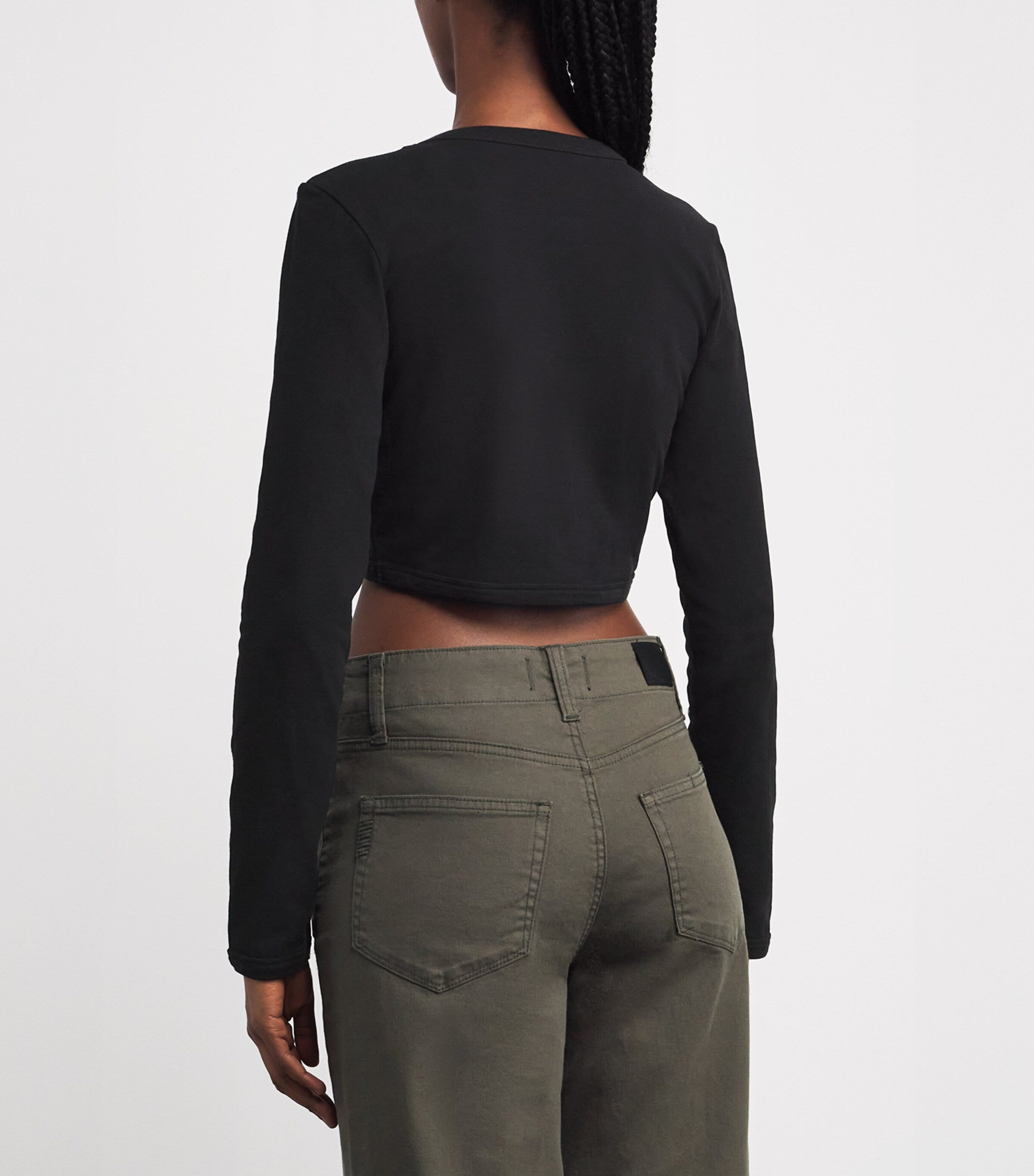 بلوزة قصيرة من ساندرو باريس مصنوعة من القطن المرن باللون الأسود مع شعار