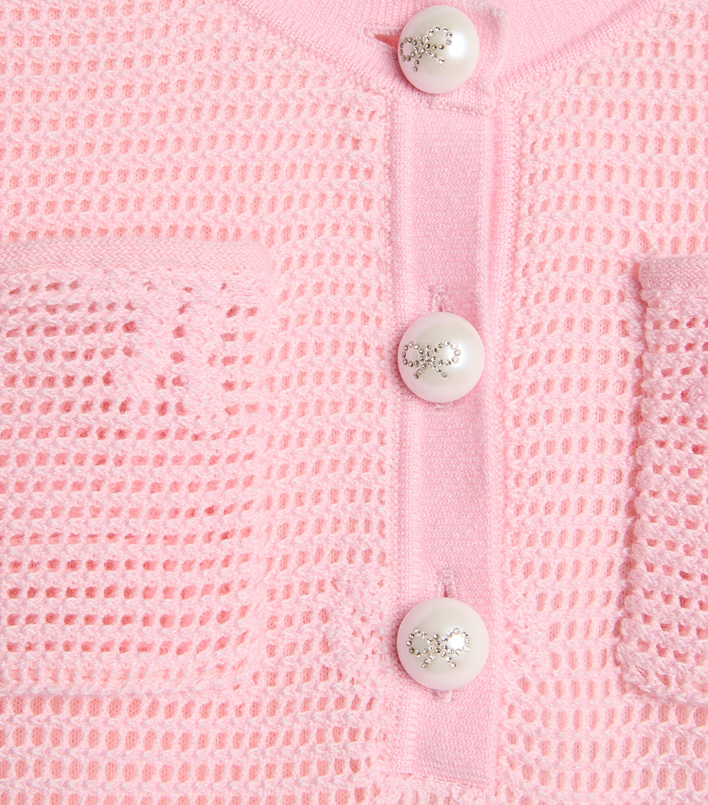 فستان وردي من Self-Portrait Kids مع تفاصيل فيونكة كروشيه (3-12 سنة)