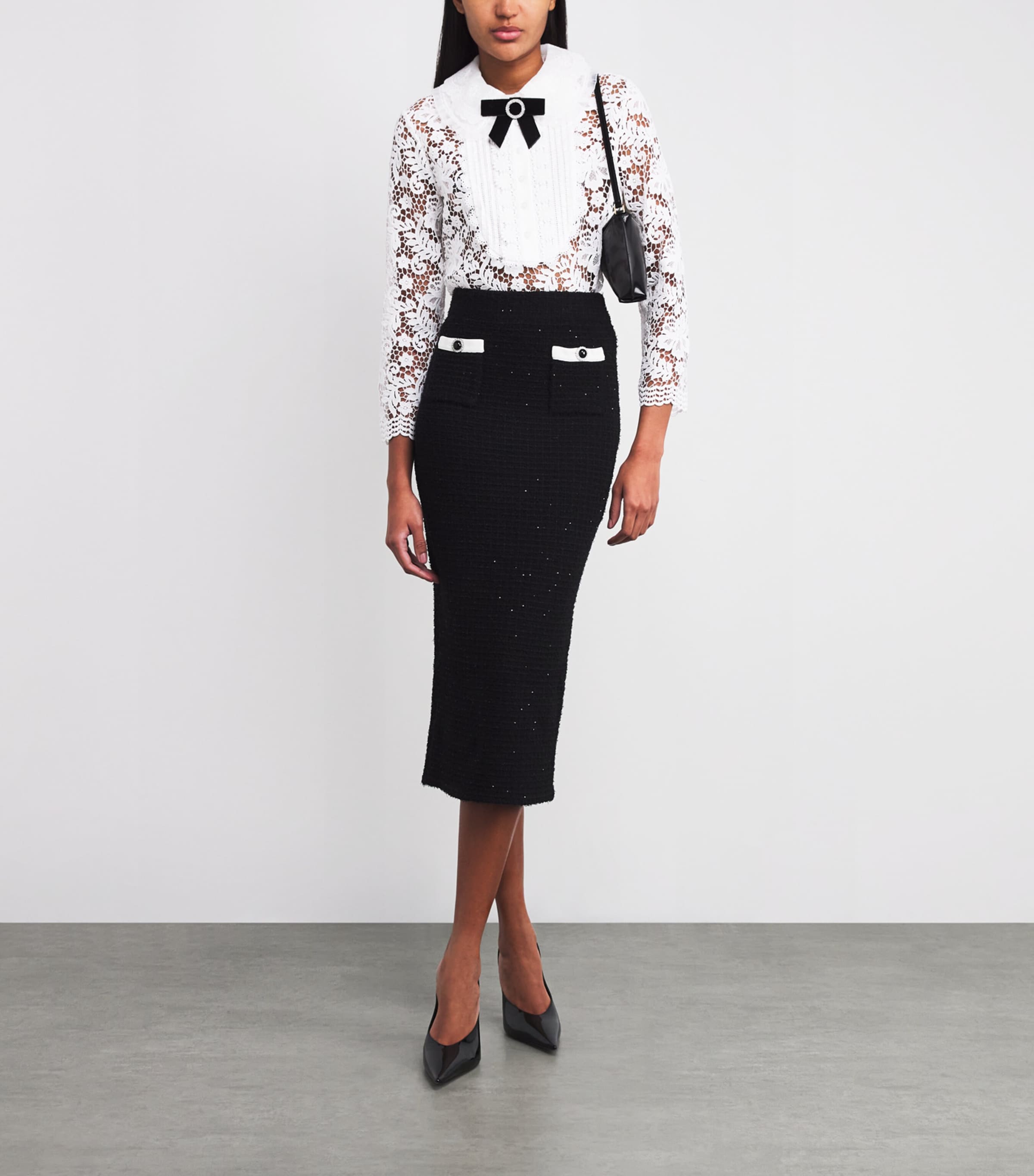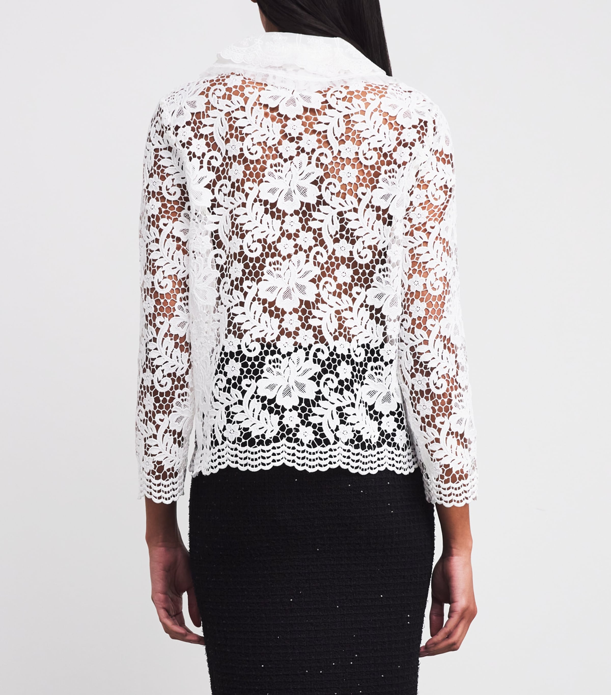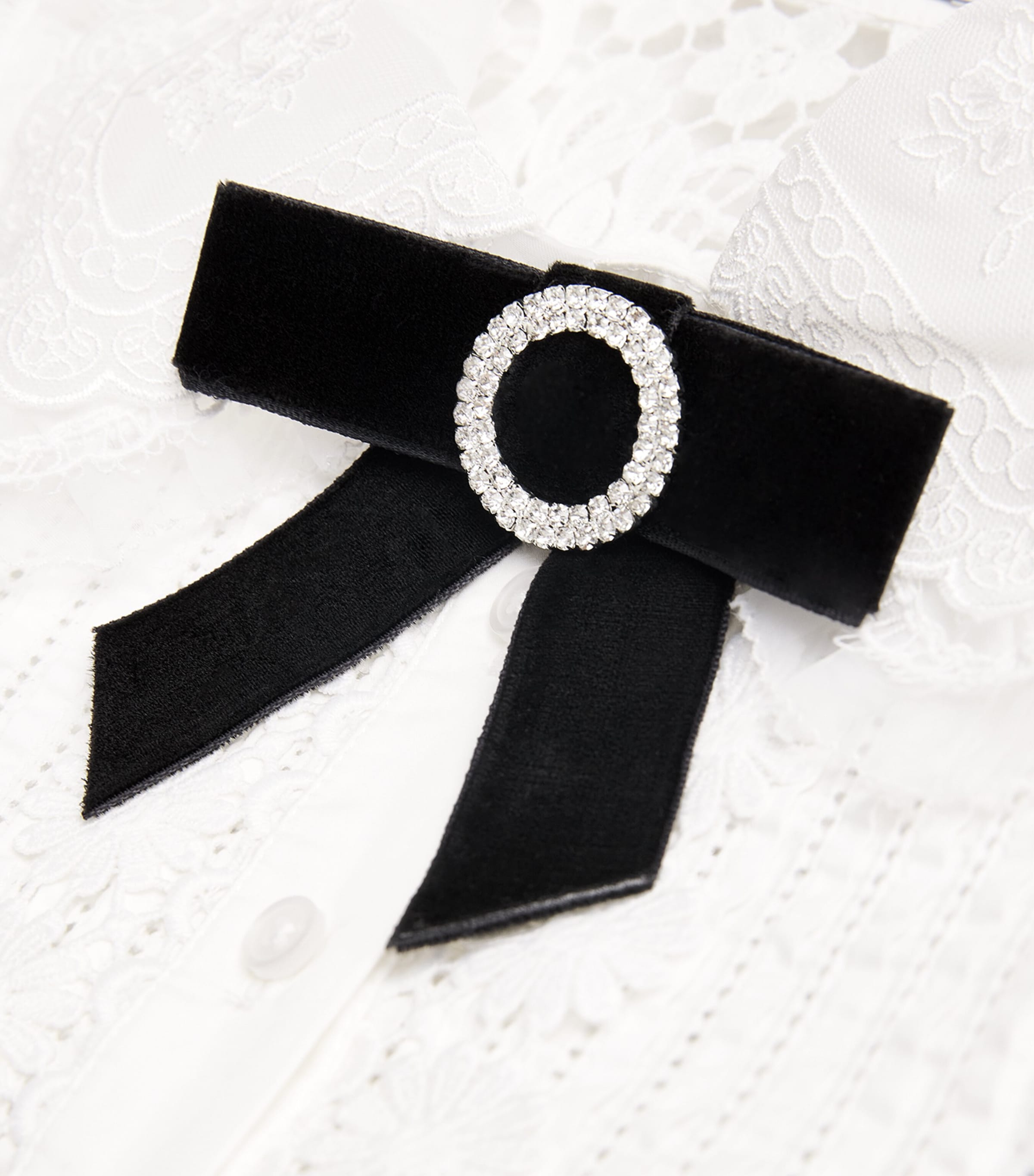 بلوزة من الدانتيل الأبيض بتفاصيل فيونكة من Self Portrait