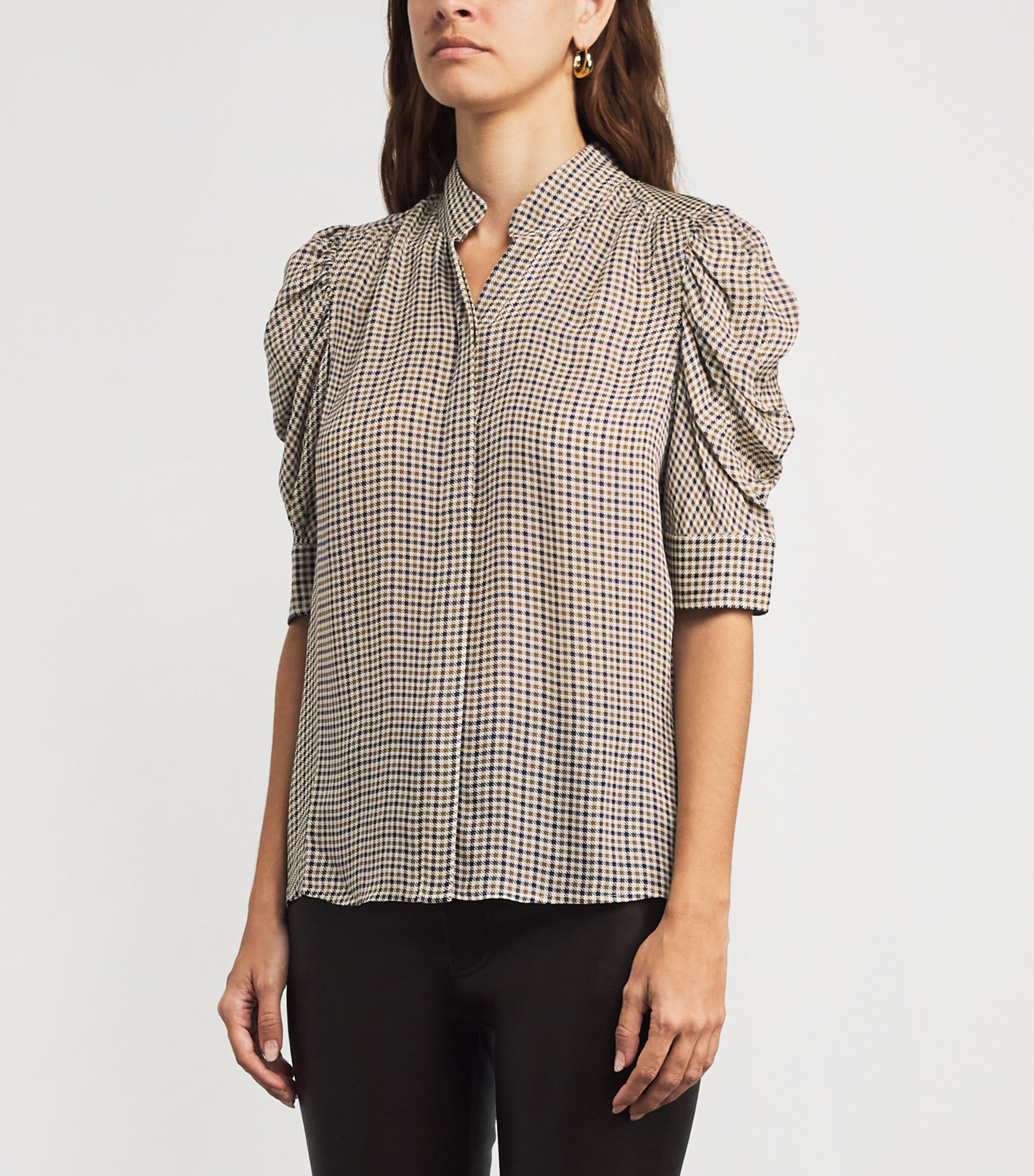 بلوزة جيليان من الحرير بنقشة مربعات صغيرة