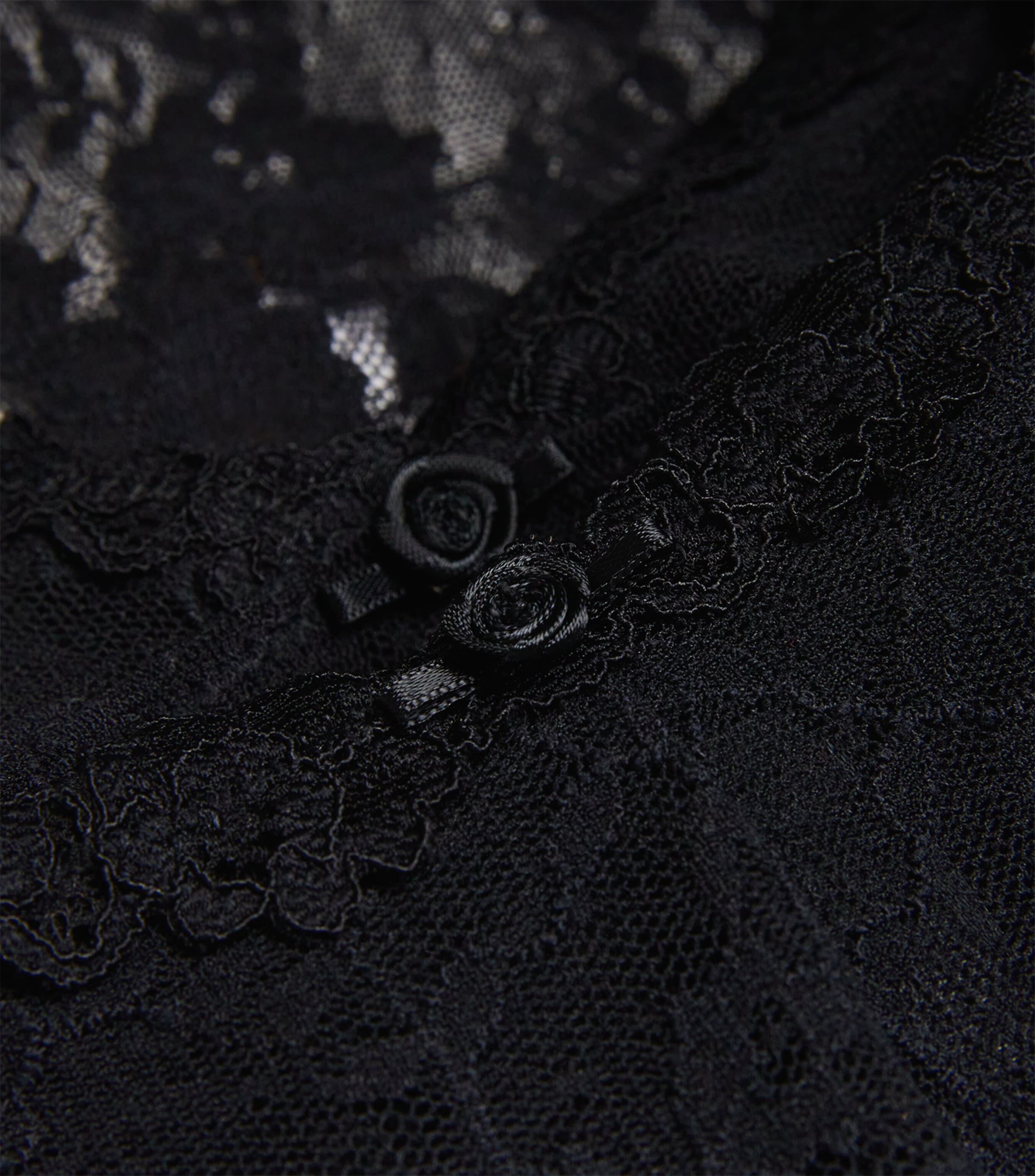 طقم سكيمز قميص داخلي وشورت أسود من الدانتيل المطاطي على شكل مثلث