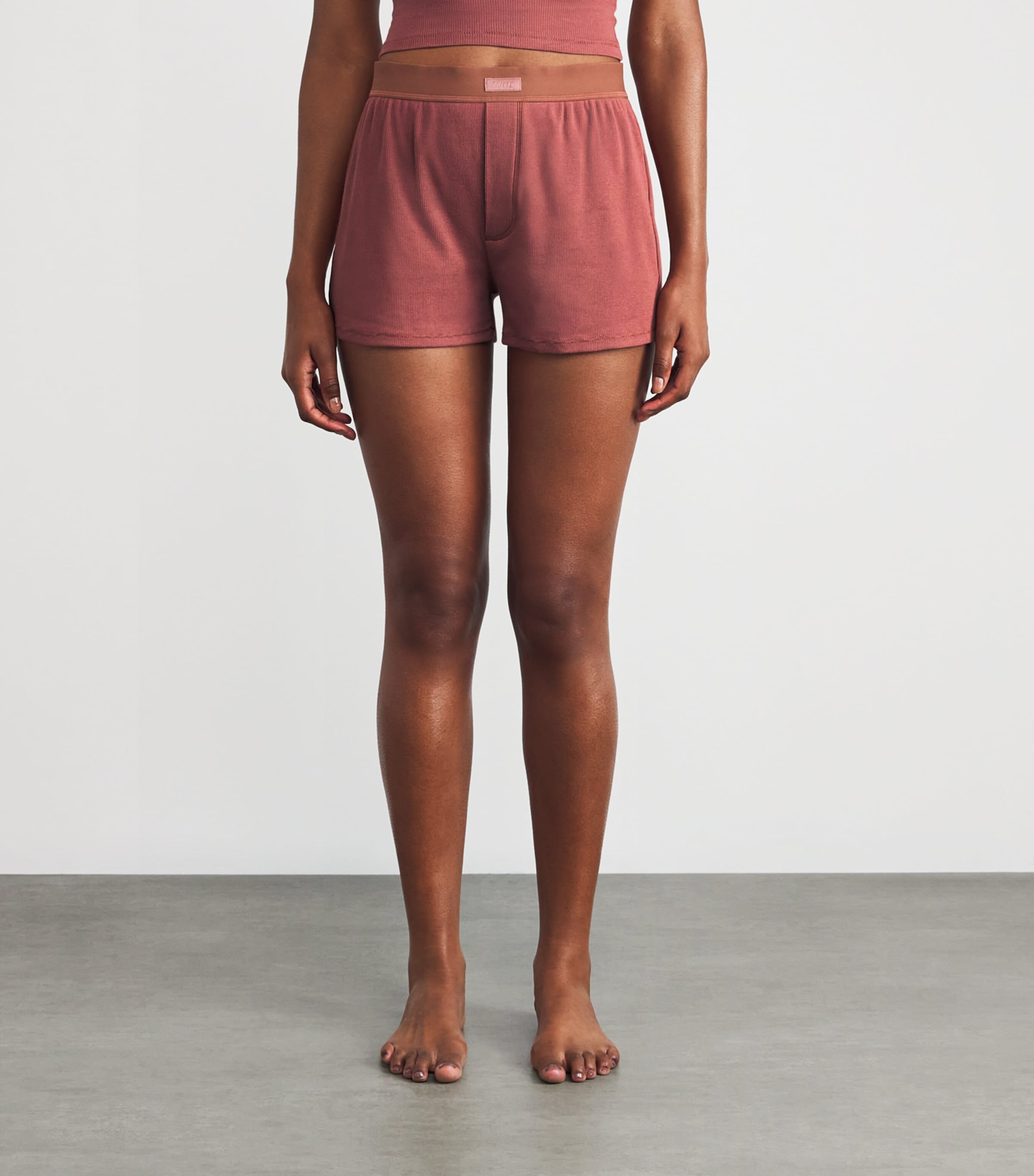 شورت بوكسر مضلع من مزيج القطن باللون البني من سكيمز