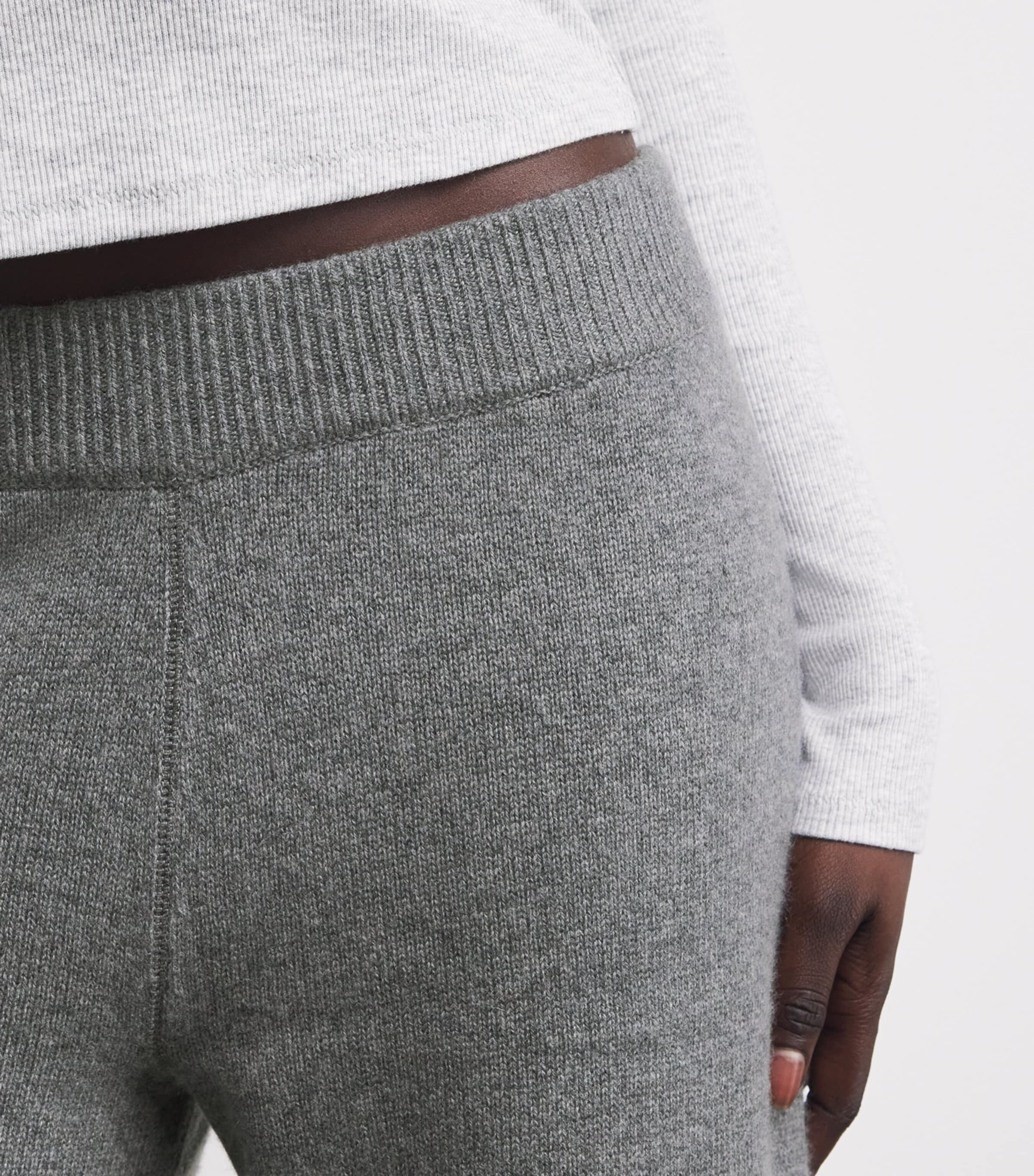 بنطلون سكيمز رمادي من الكشمير واسع الساق - رمادي غامق / XXS
