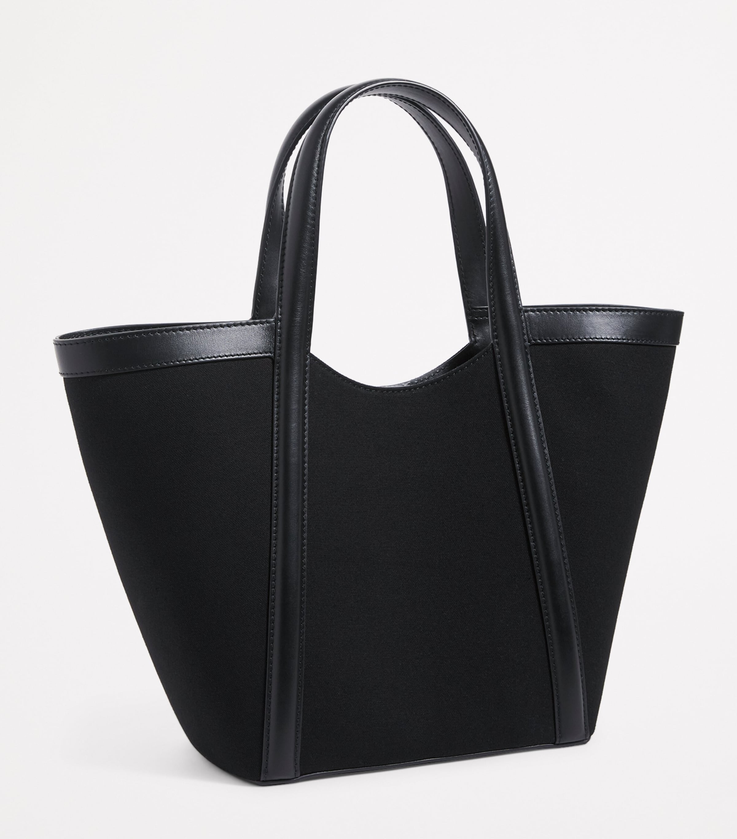 حقيبة توت صغيرة من القماش والجلد المنقوش باللون الأسود