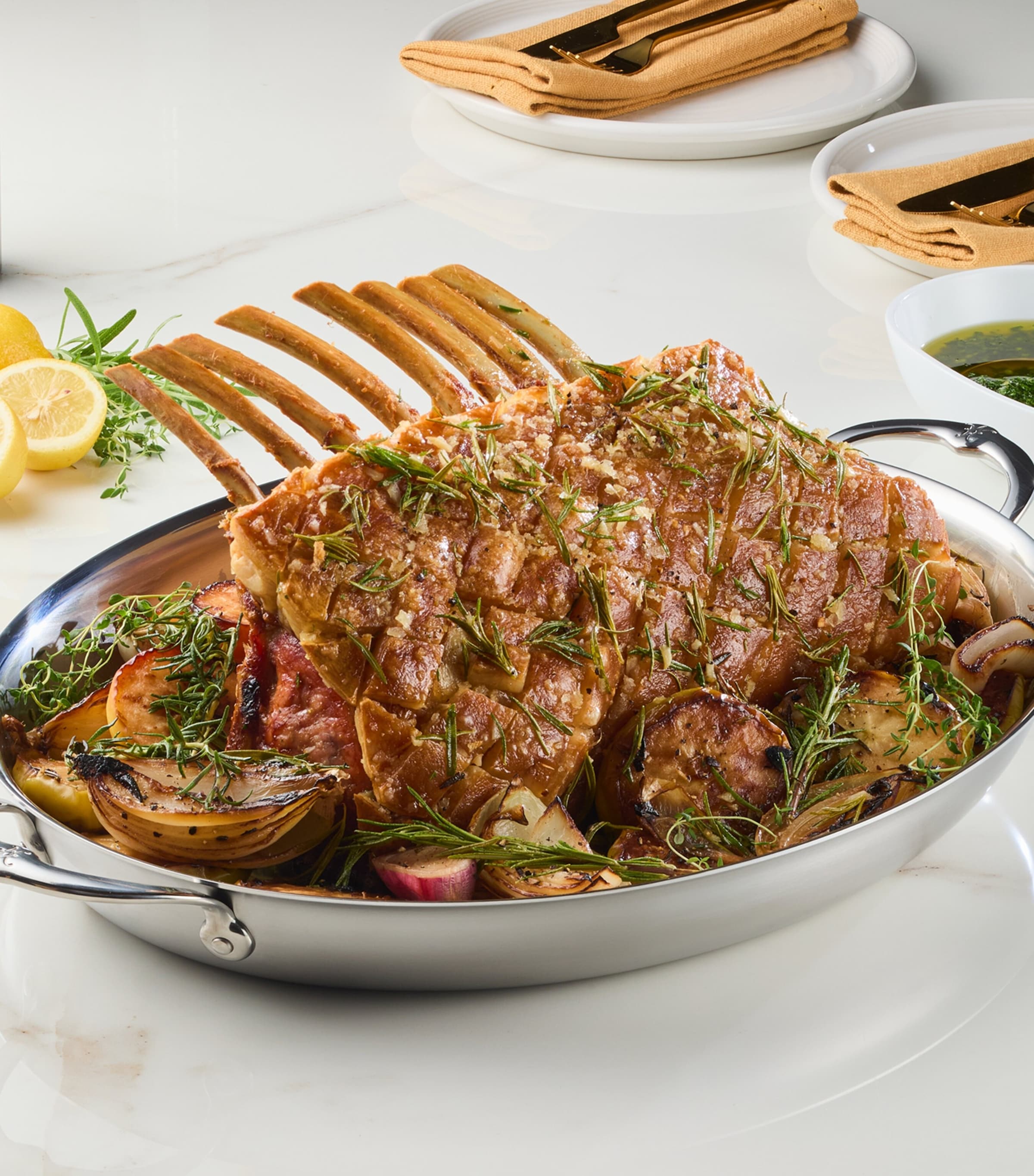 The shallow form of an au gratin allows for even cooking, a feature accentuated by the even heat distribution of Hestan's stainless steel.