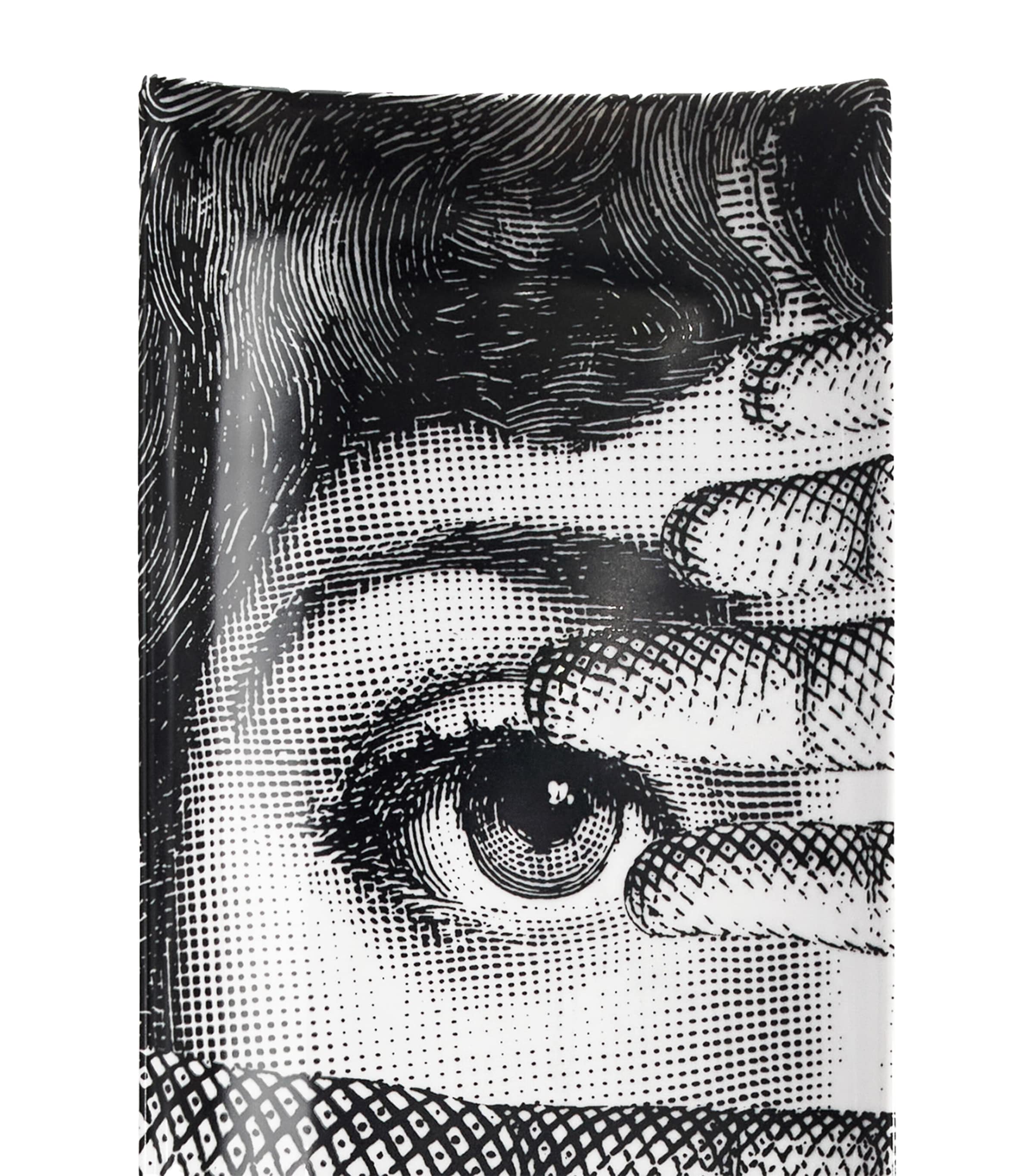 The face of Lina Cavalieri will not be unfamiliar to those partial to one of Fornasetti’s Tema e Variazioni ceramics. The opera singer emerged from the pages of 19th-century magazines and became a source of inspiration to Piero Fornasetti, who imagined her in an endless series of portraits. In the case of Tema e Variazion No. 154, Cavalieri’s face and concealing hands provide the background, while Fornasetti’s clever use of shadow helps to create dimension.