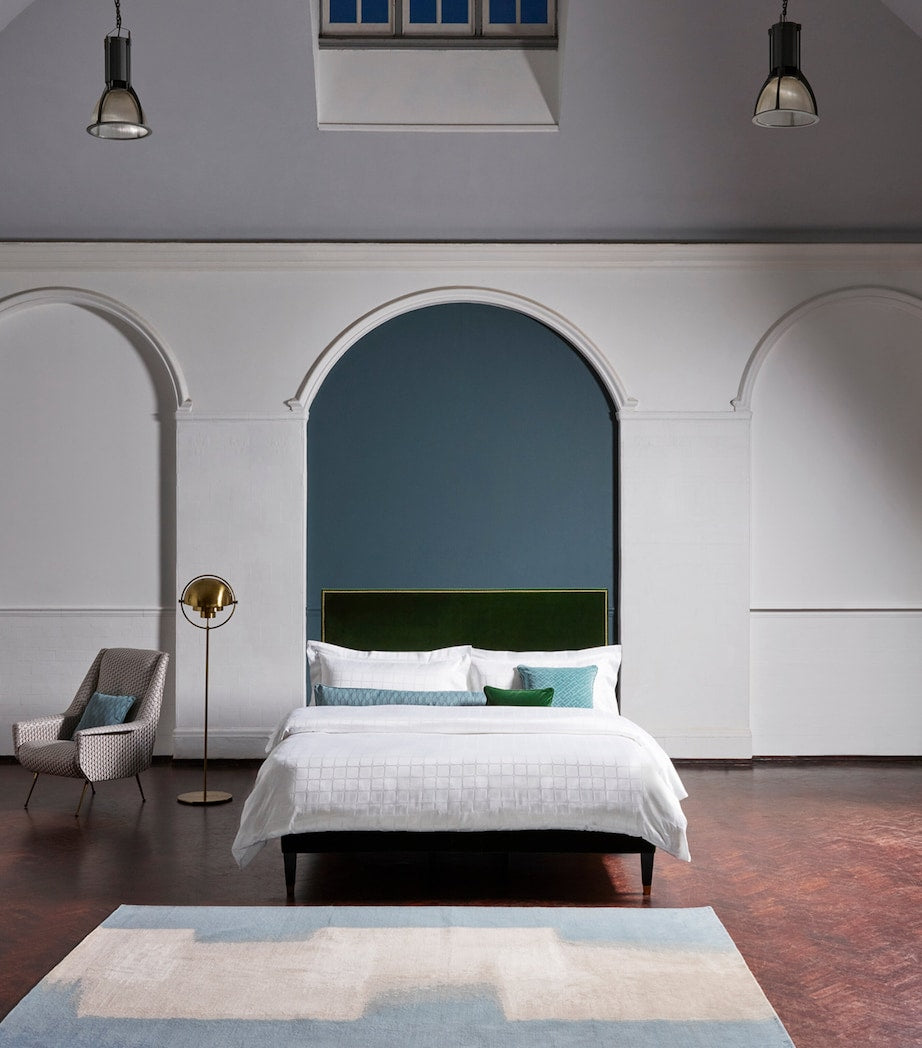 تُشكّل نقشة المربعات التقليدية نقطة انطلاق مجموعة "تريليس" من "سافوار"، المصنوعة من قطن الجاكار الإيطالي الفاخر ذي 600 خيط، والمنسوج بلمعة خفيفة. تُناسب هذه المجموعة، ذات الحجم الكبير جدًا، أجنحة المدينة كما تُناسب القصور الريفية، وهي مثالٌ استثنائي على براعة "سافوار" في صناعة المفروشات الإنجليزية الراقية.