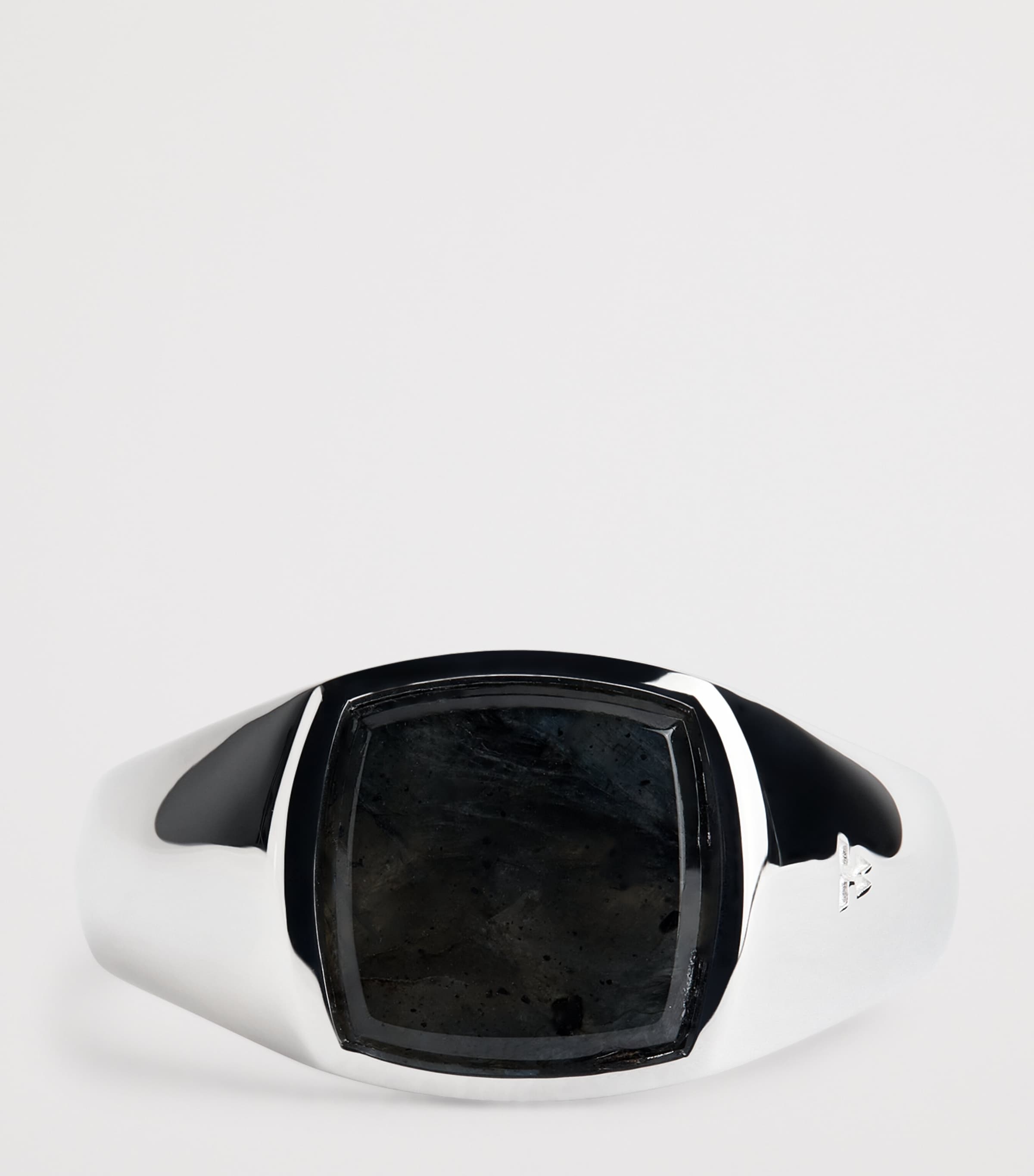 انغمس في جمال حجر اللارفيكيت الساحر، المستخرج من مضيق لارفيك في النرويج، وتأمل ألوانه المتلألئة من الأزرق والأخضر والرمادي التي تتجلى في خاتم كاي من توم وود. يُحيط بالخاتم هيكل أملس من الفضة الإسترليني المعاد تدويرها، ليُصبح إضافة مميزة إلى مجموعتك من الإكسسوارات.