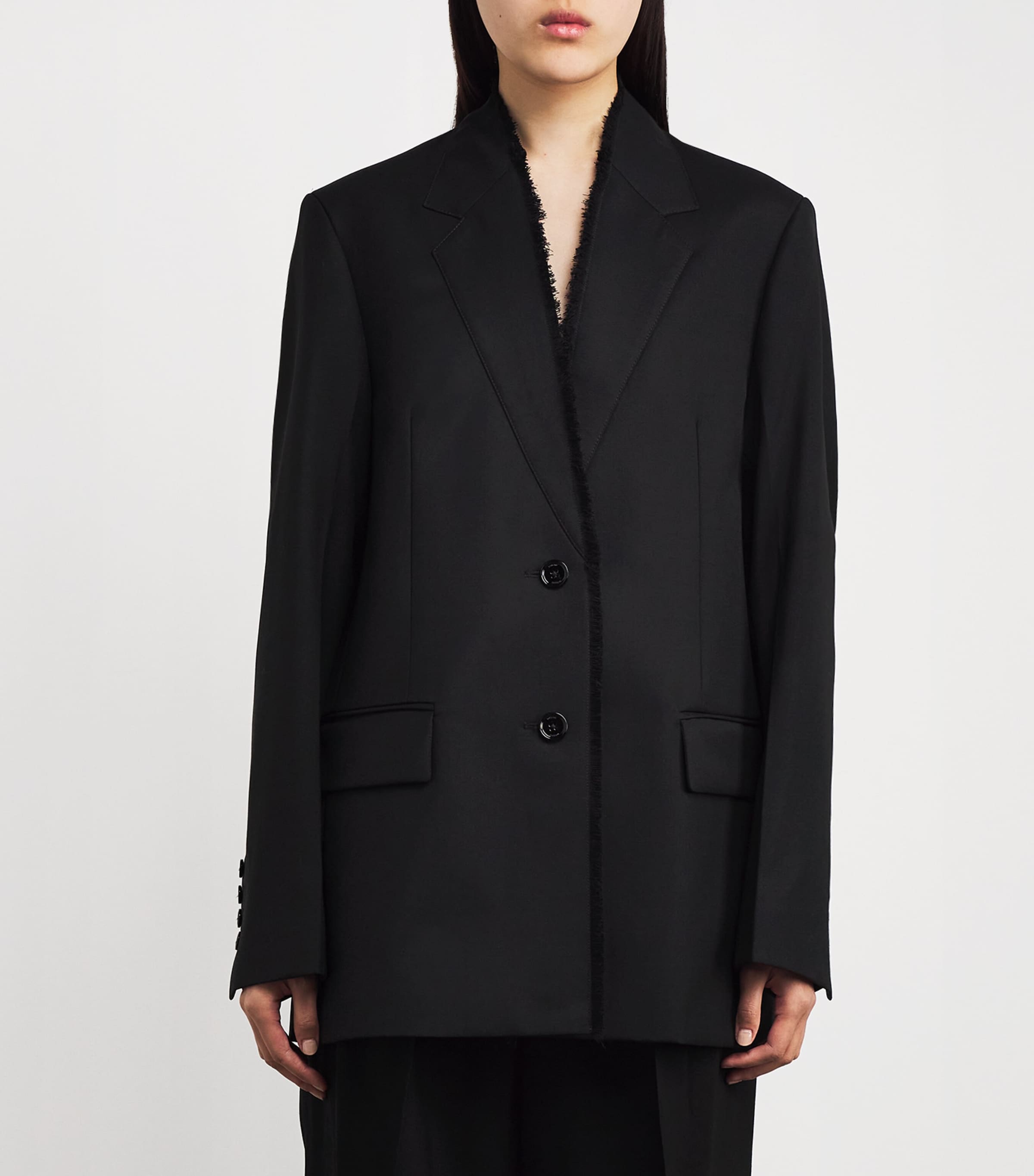 حواف متهالكة ببراعة وانحناءات غير متوقعة تجعل هذه السترة أكثر من مجرد قطعة أساسية أنيقة غير رسمية.