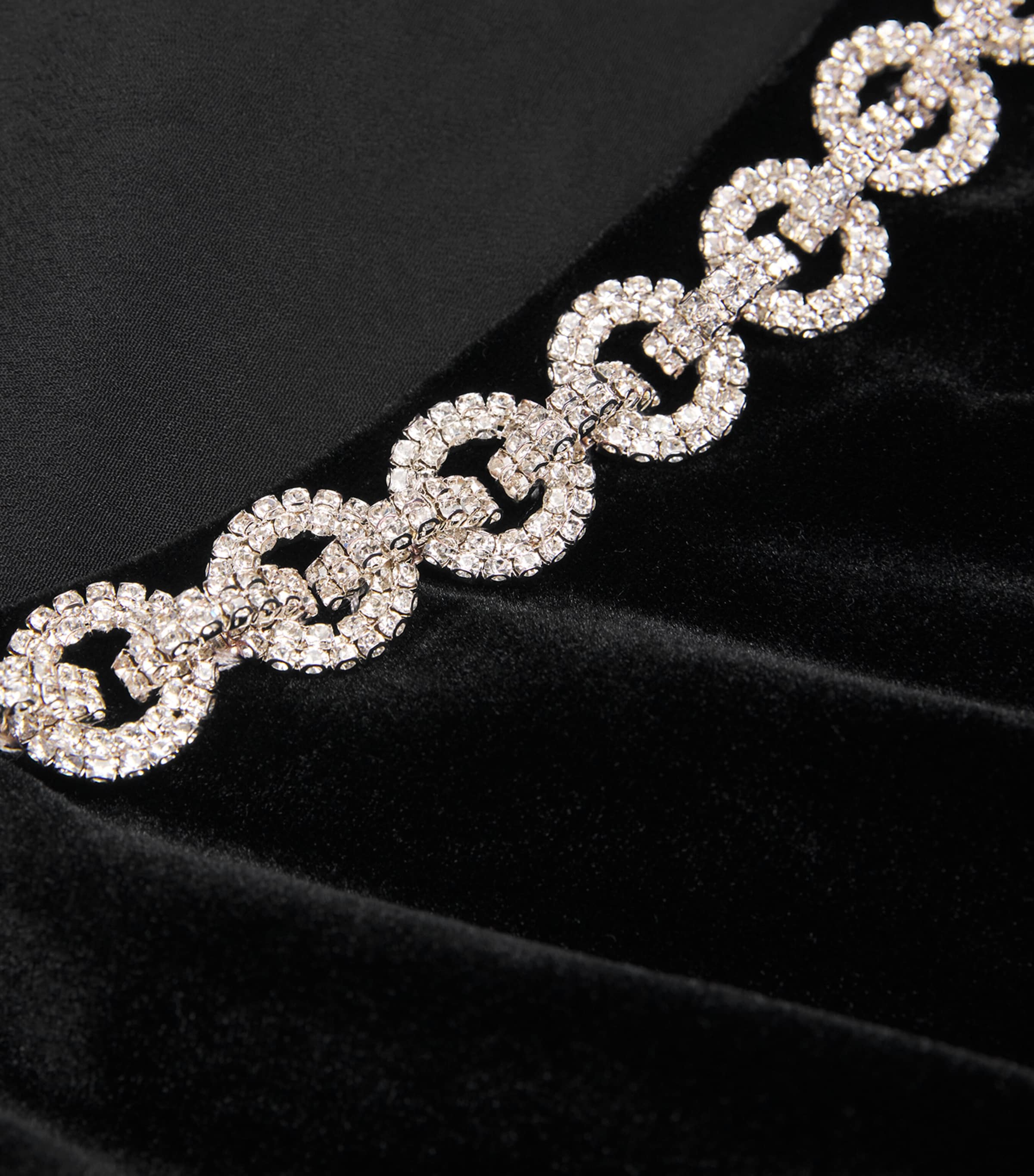 فستان قصير مزين بالمخمل - أسود / 16 المملكة المتحدة