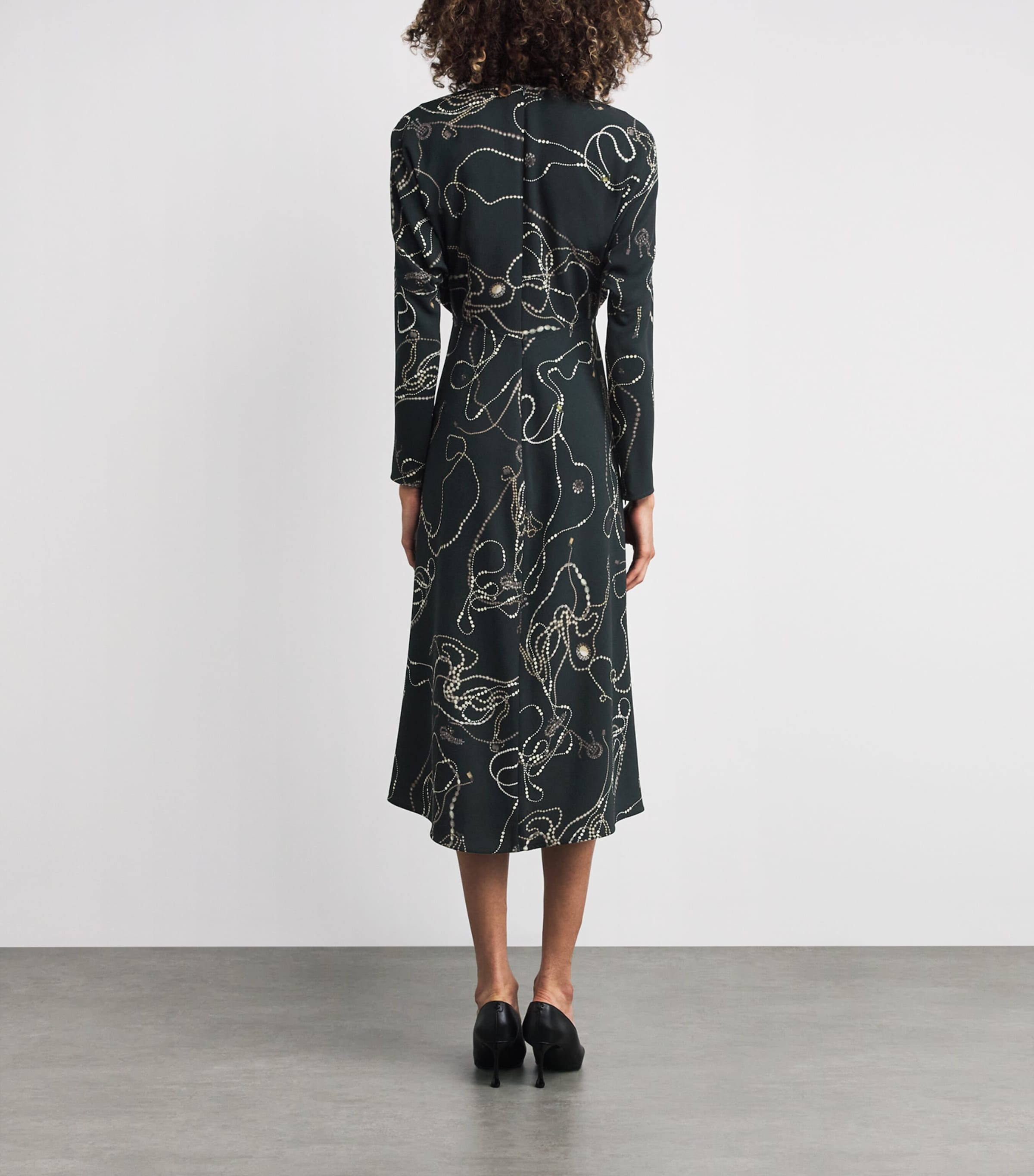 فستان فيكتوريا بيكهام دولمان ميدي أسود مطبوع