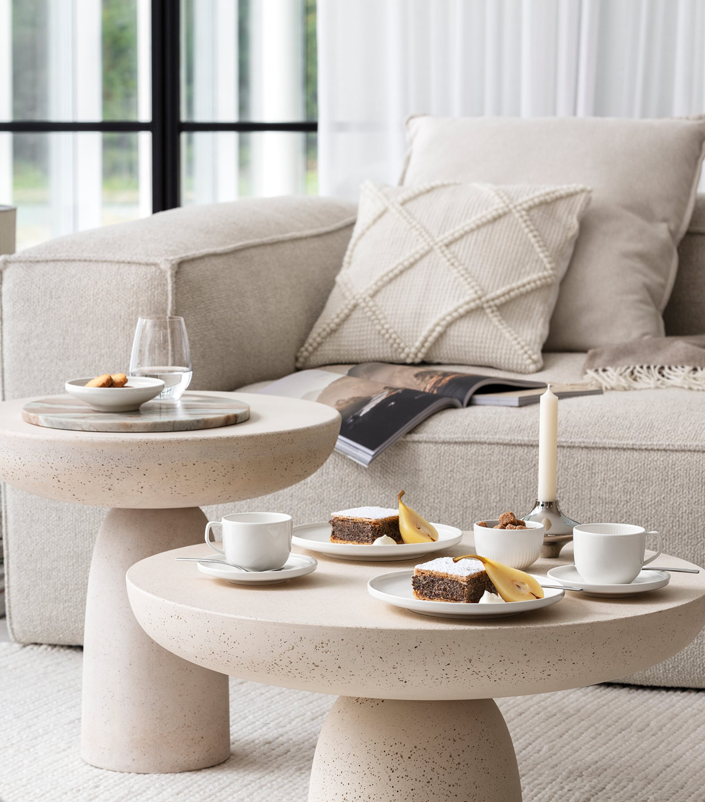 غالبًا ما تنبثق مجموعات أدوات المائدة من فيليروي آند بوخ من الملاحظة الفنية، وسلسلة أفينا ليست استثناءً. استوحى المصمم من السعي وراء التميز والسكينة، فجمع بين الأشكال البسيطة والتفاصيل الدقيقة المصنوعة يدويًا ليُبدع أطباق السلطة هذه. لاحظ كيف تُحاكي أشعة الشمس المتداخلة من خلال نقش دائري بارز وقاعدة مخفية.