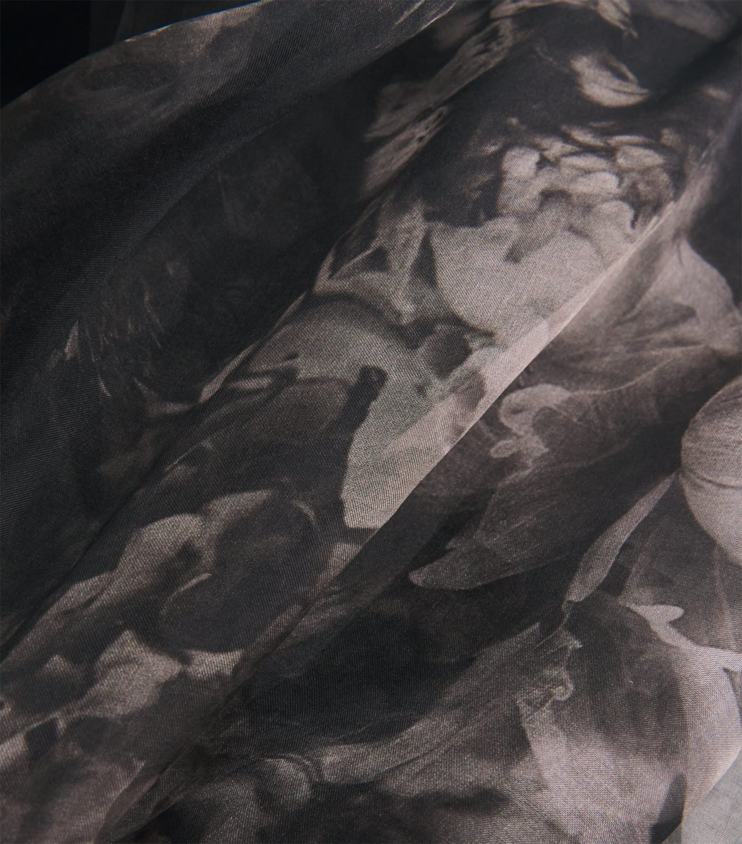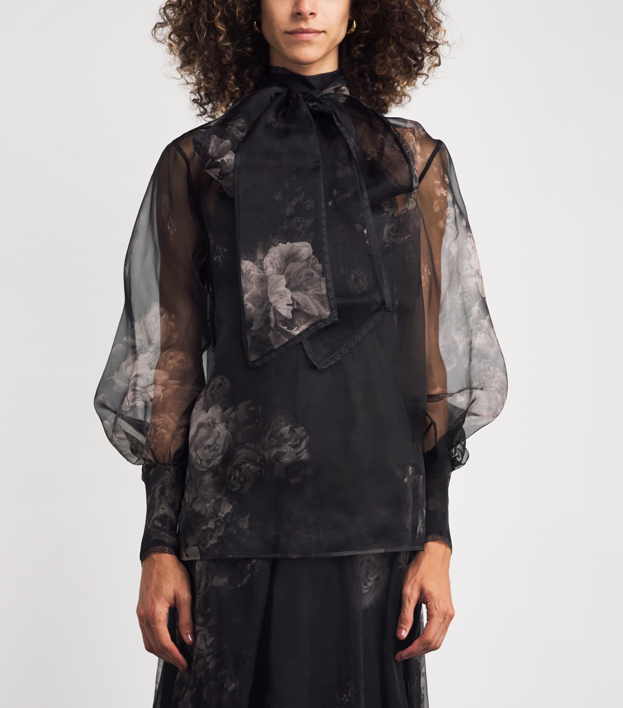 بلوزة زيمرمان الحريرية السوداء المنومة بفيونكة صغيرة - زهور الأشباح / 0