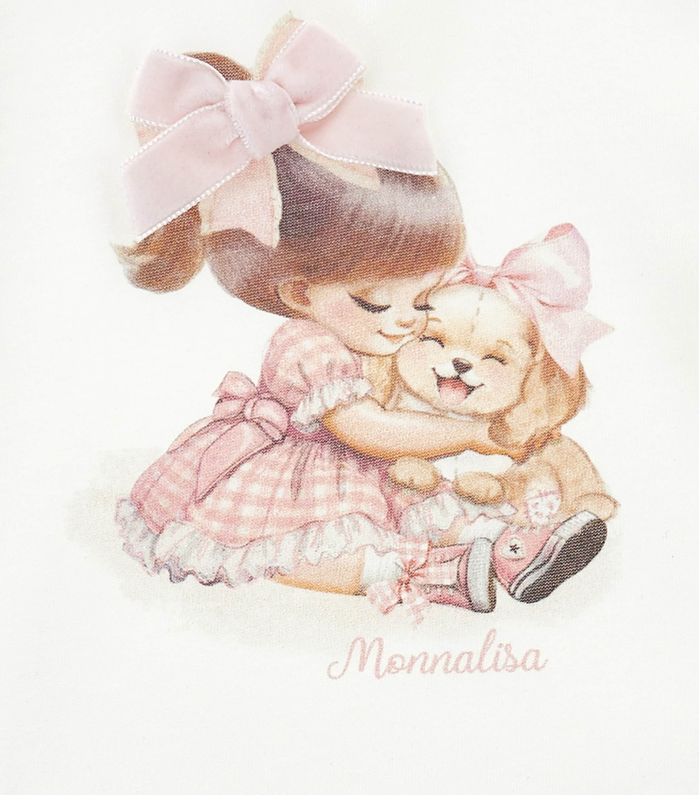 A charming duo takes centre stage on this Monnalisa long-sleeve T-shirt, where a playful girl and her pup spark stories with every wear. Crafted for comfort with a soft cotton finish and an easy teardrop fastening at the back, it’s perfect for everyday adventures, real or imagined.