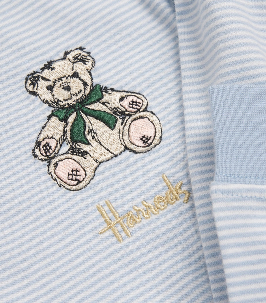 The Harrods bear was first introduced in 1906 and was named Henry after our founder Charles Henry Harrod. Here, the iconic bear is embroidered with his signature ribbon atop a soft jersey set of pyjamas, bringing a touch of fun to their nighttime routine.