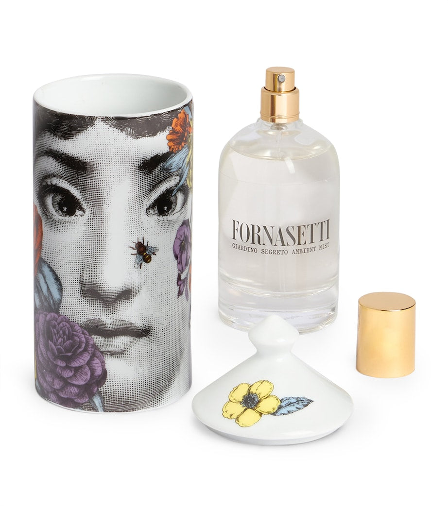 Fornasetti’s room sprays don’t just offer a delightful olfactory experience; they invite the observer to pause, creating a moment of sensory bliss where time feels suspended. The Giardino Segreto scent is no exception, evoking a secret garden where lush flora and foliage intertwine, gradually deepening into a harmonious blend of myrrh, sandalwood and ebony.