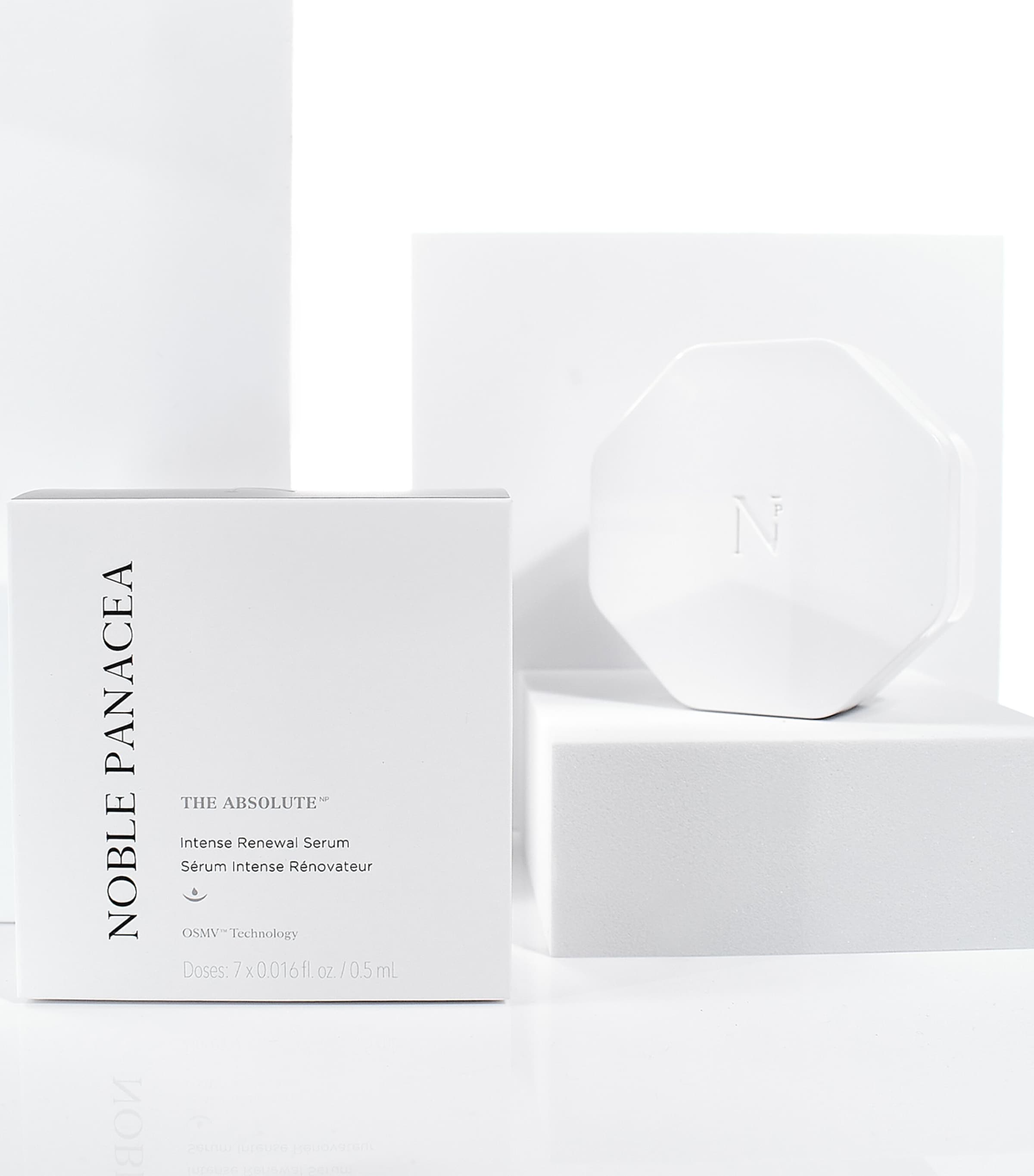 تقدم نوبل باناسيا، ضمن مجموعة تُعرف بخصائصها الحيوية، سيروم التجديد المكثف المطلق. صُمم هذا السيروم لتحفيز ودعم التجديد الطبيعي للبشرة، حيث تحتوي تركيبته المقشرة على تقنية OSMV الخاصة بالعلامة التجارية، والتي تُطلق مكونات فعالة مثل الريتينول في الخلايا لبشرة أكثر نضارة وتماسكاً بشكل ملحوظ.