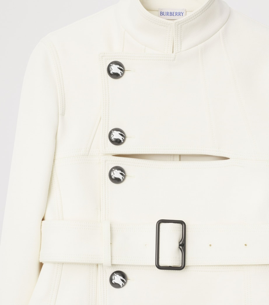 عُرضت هذه السترة لأول مرة في عرض بربري لخريف/شتاء 2025، وهي تُجسّد الروح البريطانية. تصميمها المُصمّم، المُستوحى من الزي العسكري، مُقسّم إلى ثلاثة أجزاء مُقصوصة، ما يُتيح لها قصّةً مُنخفضة يُمكن تضييقها أكثر بالحزام المُرفق. وتتجلى إلهاماتها بشكلٍ أكبر في الأزرار، التي تُظهر تصميم فارس الفروسية الخاص بالعلامة التجارية بتفاصيل دقيقة من المينا.