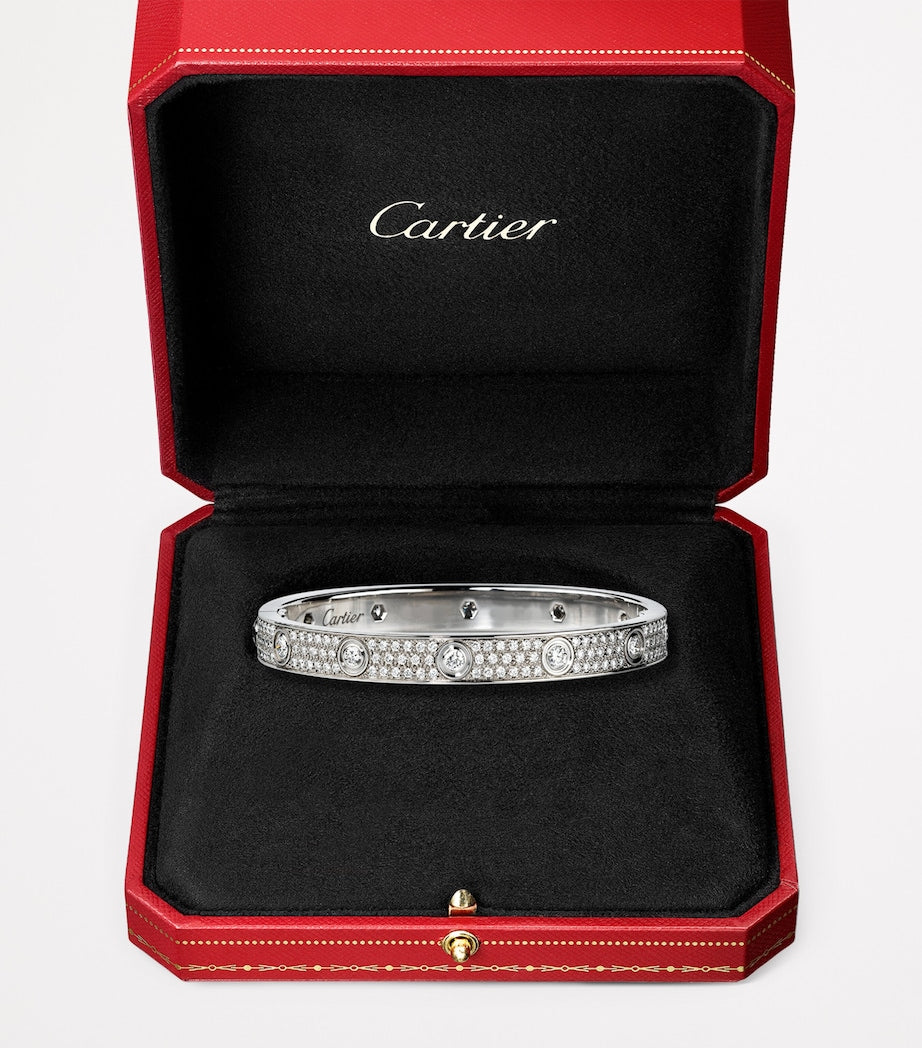 Når man tænker på Cartier, er det sandsynligvis LOVE-kollektionen, der falder én ind. Den blev skabt af den legendariske smykkedesigner Aldo Cipullo i 1969 og er nu synonym med mærkets arv. Den er værdsat for sin symbolik, der fremkalder et evigt bånd med skruedetaljer, der antyder, at bæreren er bundet til kærlighed. Disse romantiske forestillinger er her oversat til en armbånd i 18 karat hvidguld og diamanter.