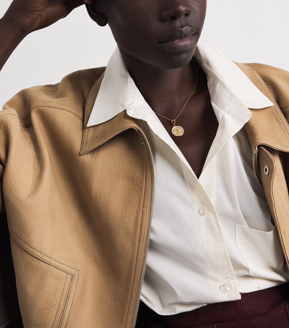 Lille møntcharme i gult guld med solstrålende diamanter