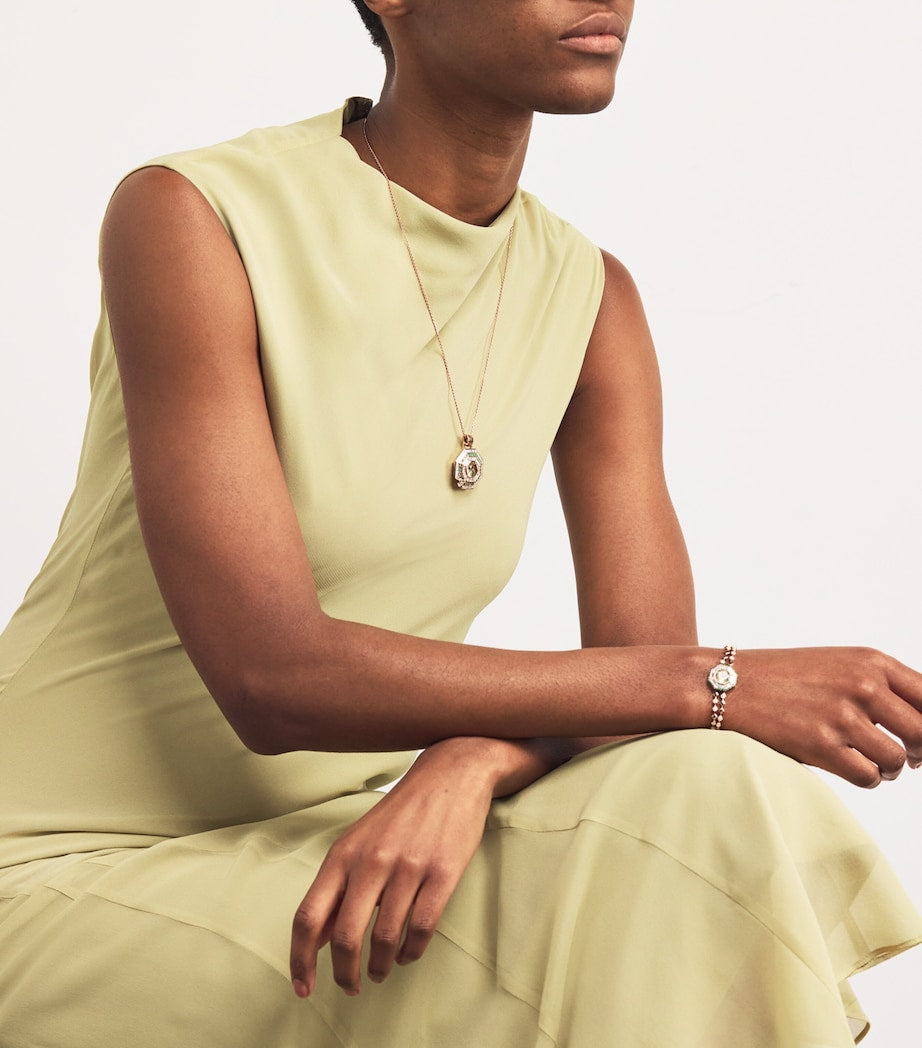 Vedhæng i gult guld med diamanter, peridot og smaragd, honningbidronning - rose gold / OS
