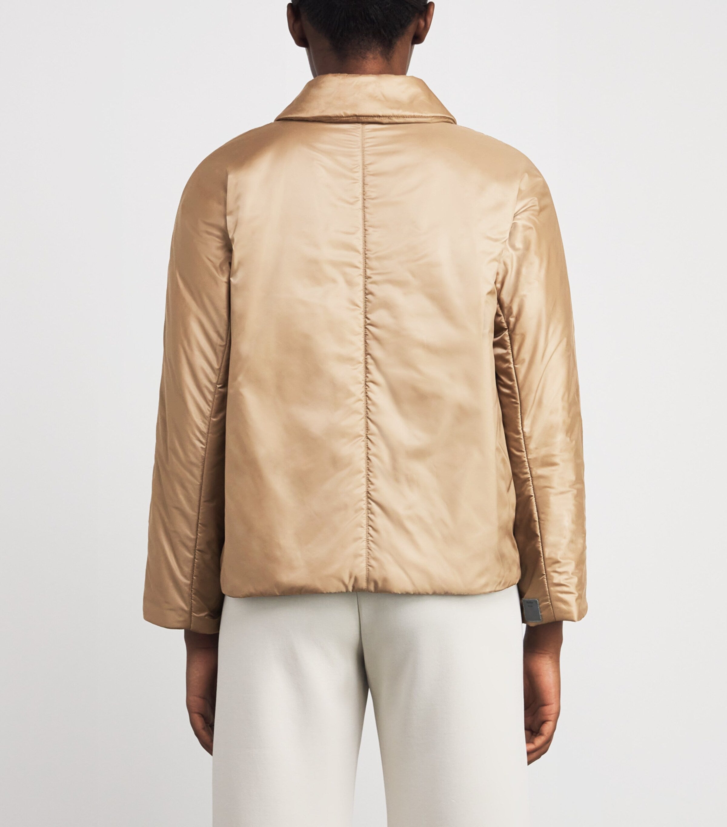 Max Maras innovativer CAMELUXE-Stoff läutet ein neues Kapitel für die renommierte The Cube Kollektion der Marke ein. Diese Jacke mit Kragen verwendet Stoffreste aus der Produktion der ikonischen Kamelhaarmäntel, die gekonnt mit recyceltem Polyester und einem Hauch Seide kombiniert wurden. Das Ergebnis? Eine umweltfreundliche Füllung, die sowohl wärmt als auch leichten Tragekomfort bietet.