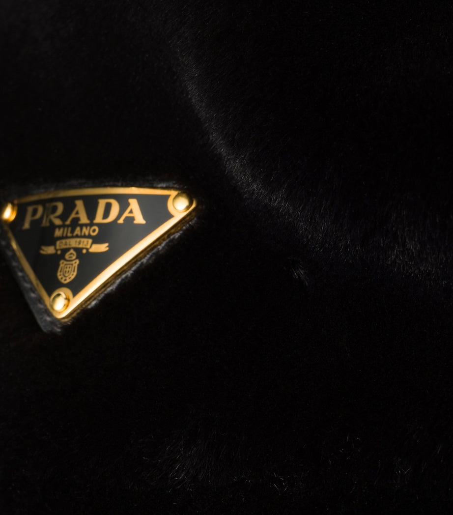 Der Prada-Bucket-Hat ist mittlerweile Kult, und das Dreieck-Logo ziert eine Reihe monochromer Modelle. Nun hat das Modehaus den Klassiker der 90er-Jahre erneut in ein winterliches Accessoire mit Kunstpelz verwandelt. Die weiche Textur umgibt das metallische Logo und vermittelt ein Gefühl von behaglicher Wärme.