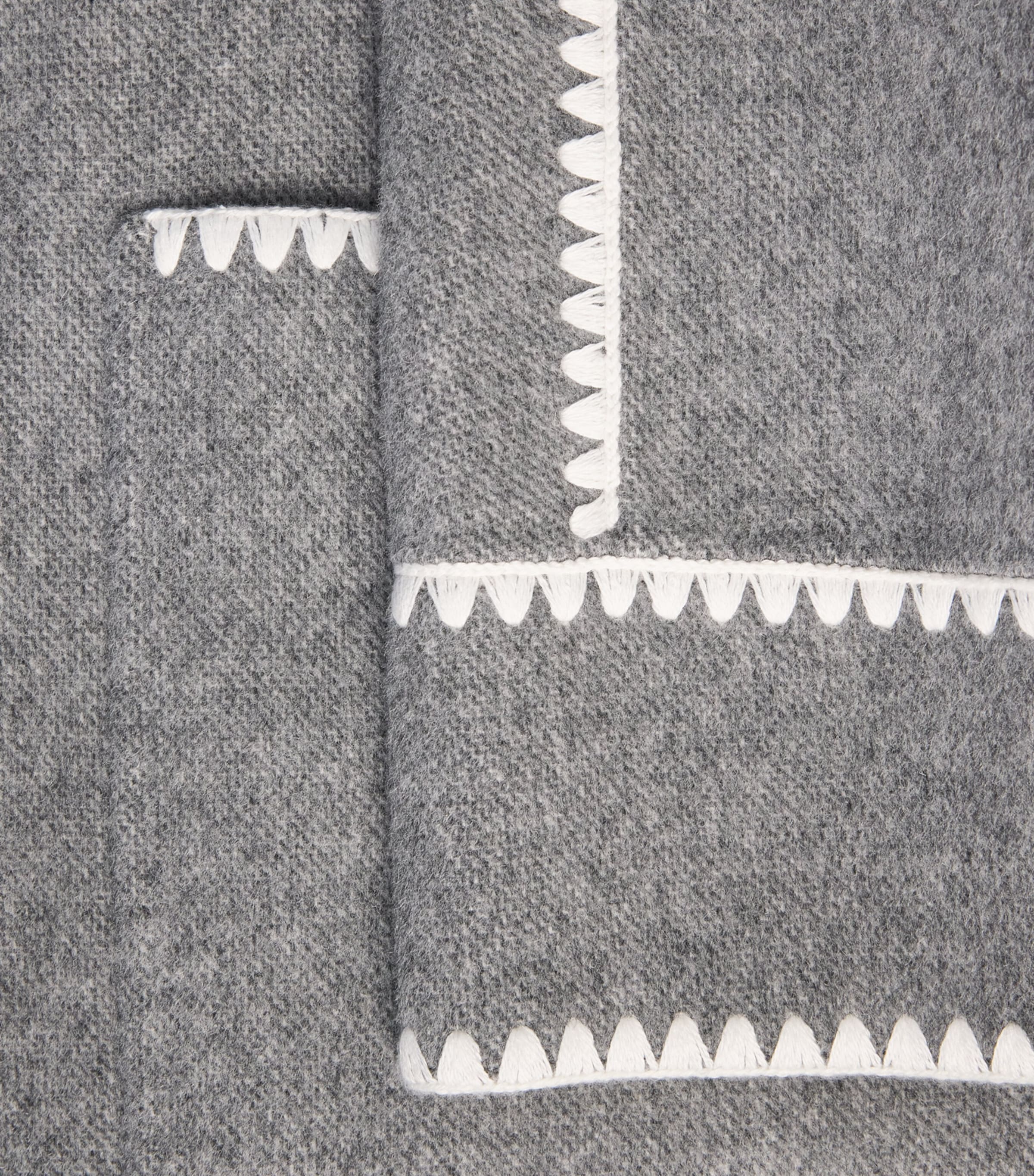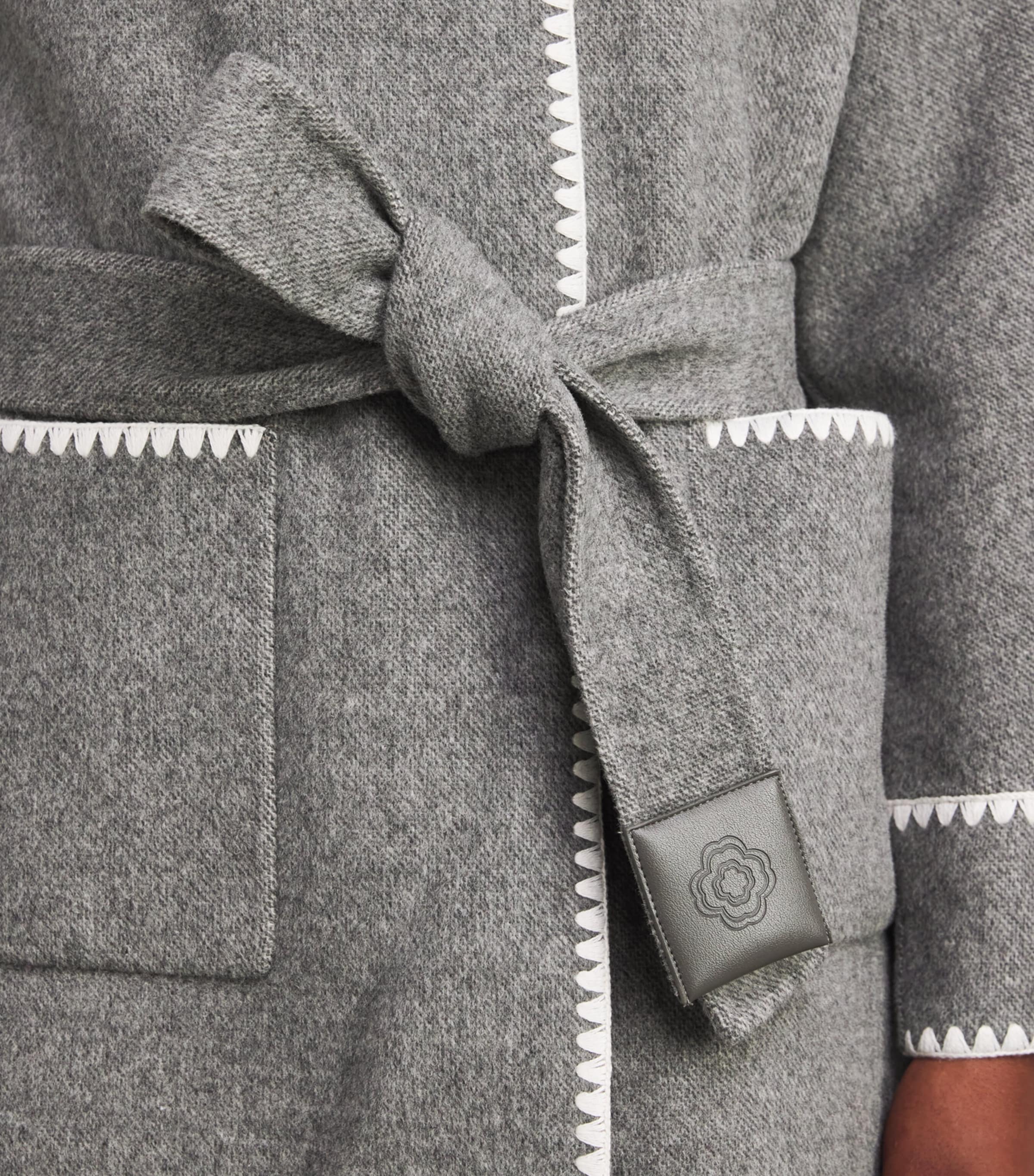 Das Kleeblatt-Logo von Maje, ein ineinandergreifendes, doppelreihiges Design, steht für den Sinn für eleganten Stil und makellose Qualität. Hier ziert es den Gürtel, der die lässige Silhouette dieses Wickelmantels aus Wollmischung unterstreicht. Kontrastierende Details an den Nähten verleihen ihm eine markante Note.