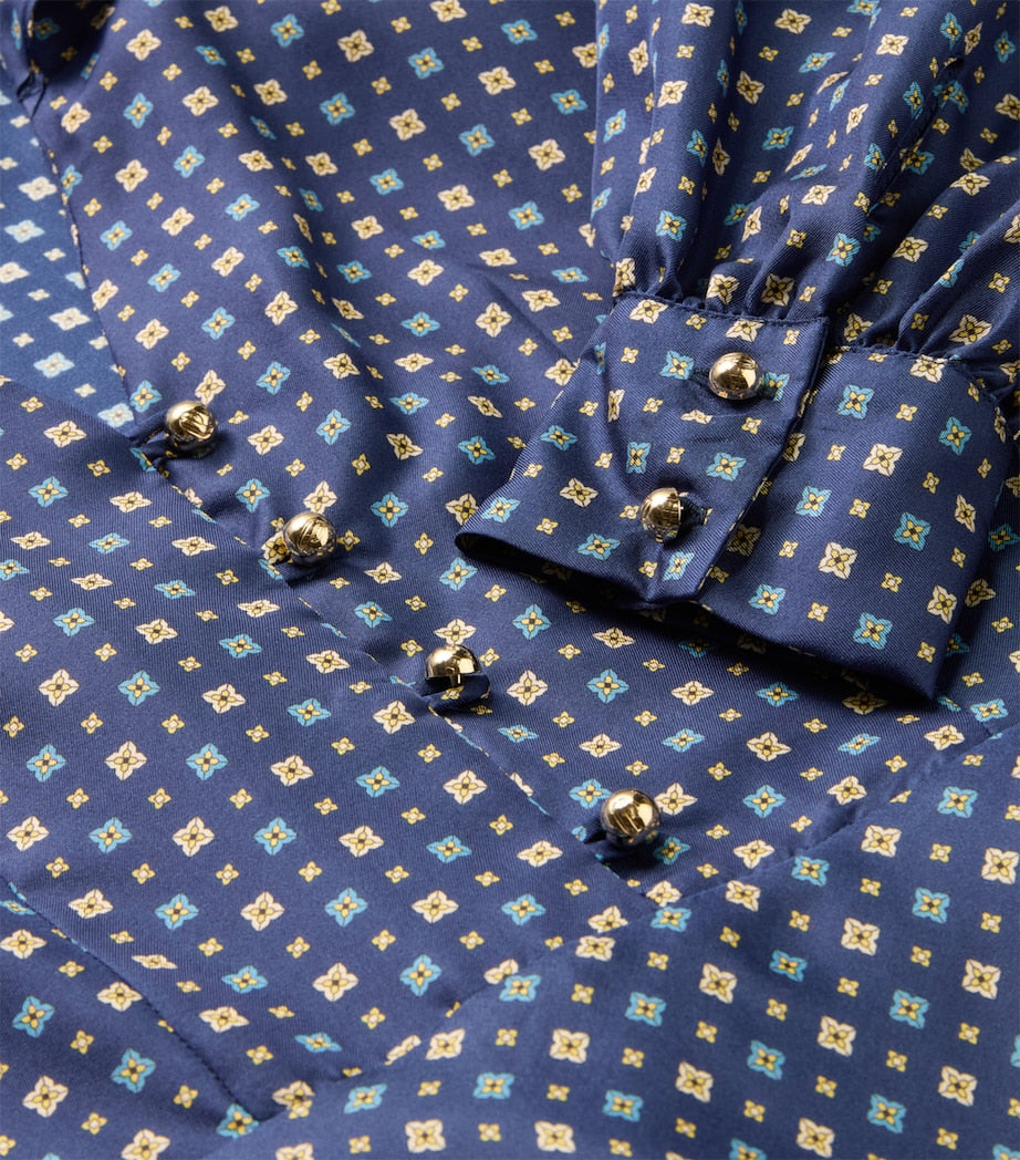 Geometrische Blumenmuster erblühen auf dem Seidenprofil.