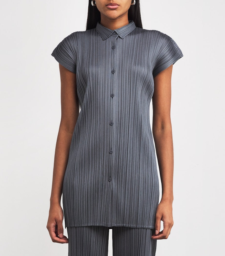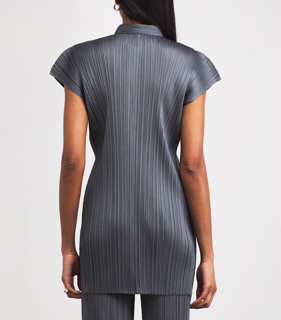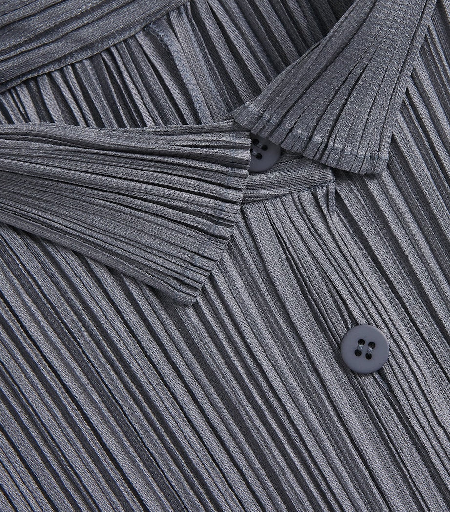 Die monatlich aktualisierte Kollektion MONTHLY COLORS von PLEATS PLEASE ISSEY MIYAKE lädt Sie ein, Ihre Garderobe mit den Farben der Saison aufzufrischen. Dieses Top aus der Mai-Kollektion, das die ikonischen Plissees präsentiert, ist von Röntgenstrahlen inspiriert, die Objekte durchdringen, und vereint Lebendigkeit, Wissenschaft und Natur. Es bietet eine längliche Silhouette mit Knopfleiste und Kragen, während das dehnbare Material ganztägigen Tragekomfort garantiert.