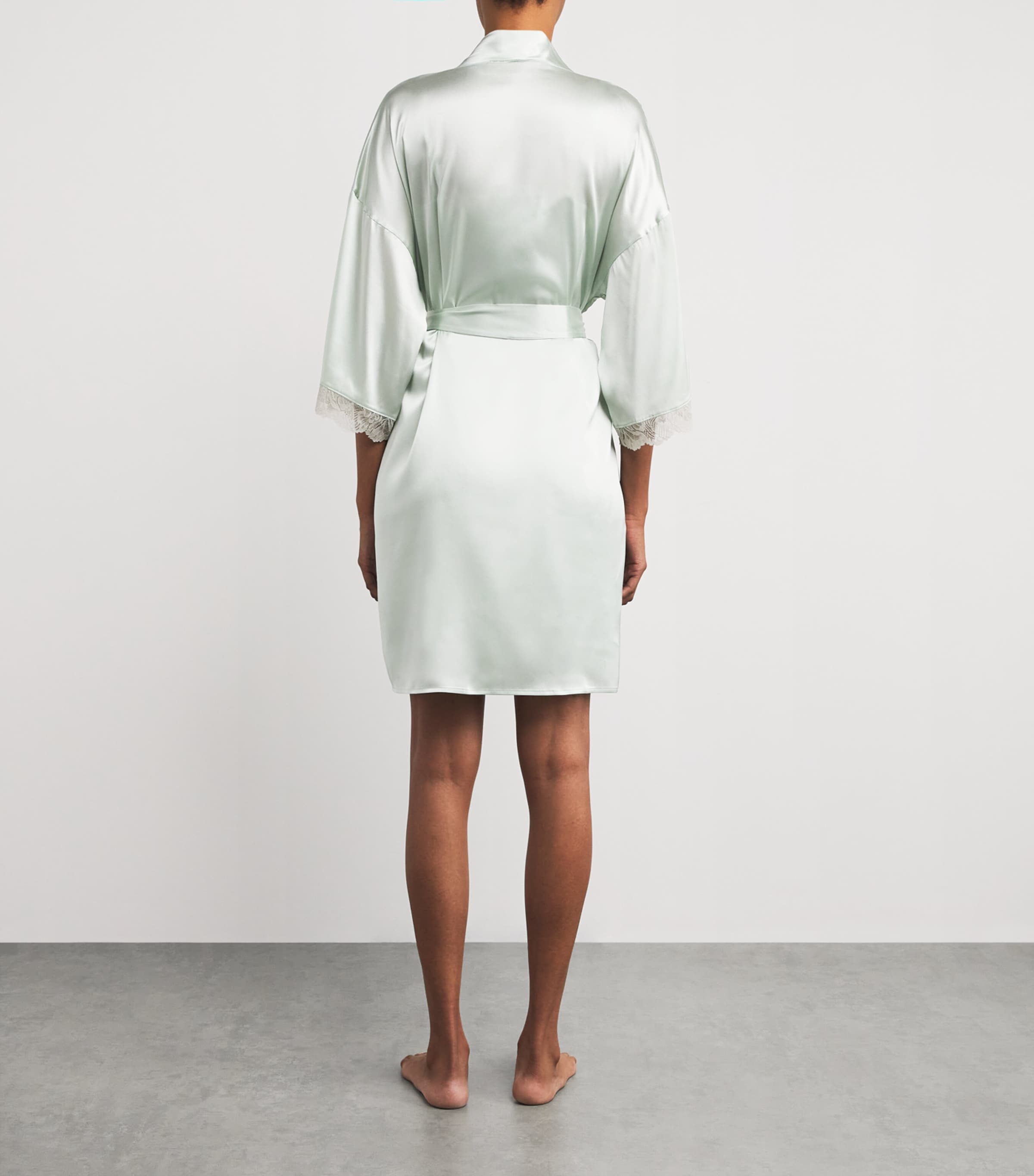 Hanro Seidenbademantel mit grünem Spitzenbesatz